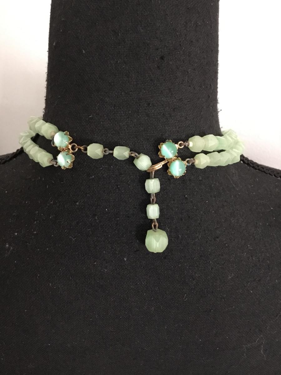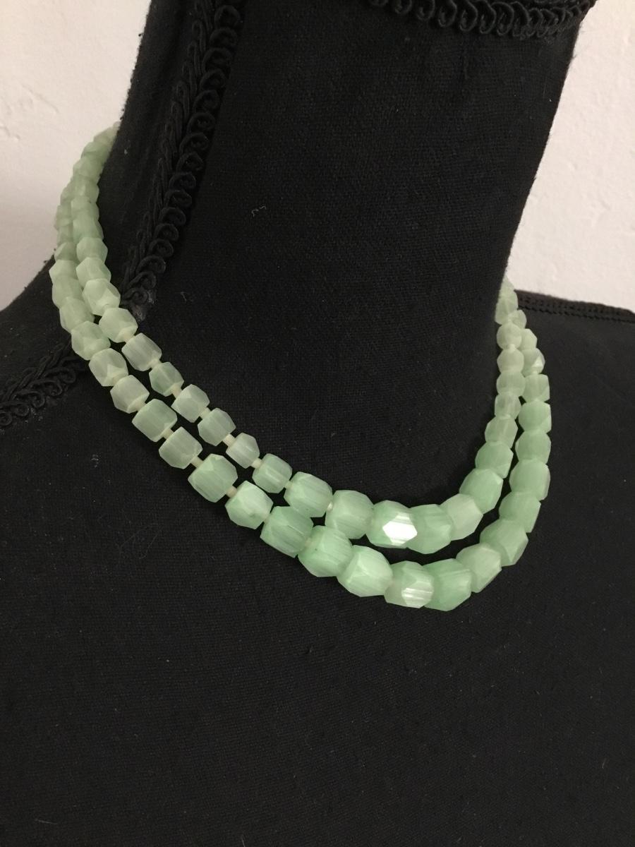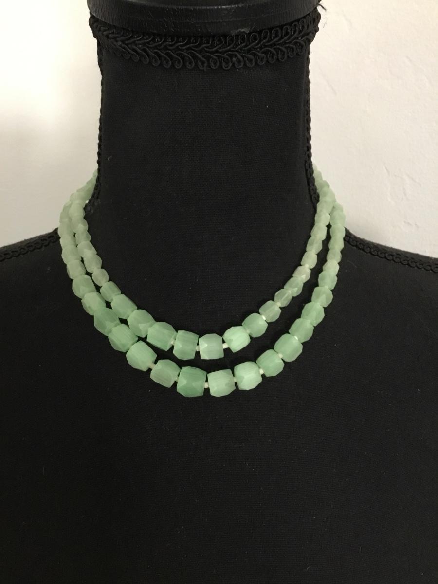 Beautiful, gorgeous, antique, natural pistachio serpentine, gemstone, faceted, bead, double strand, choker necklace