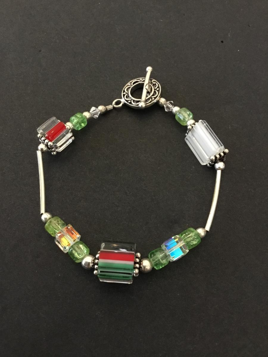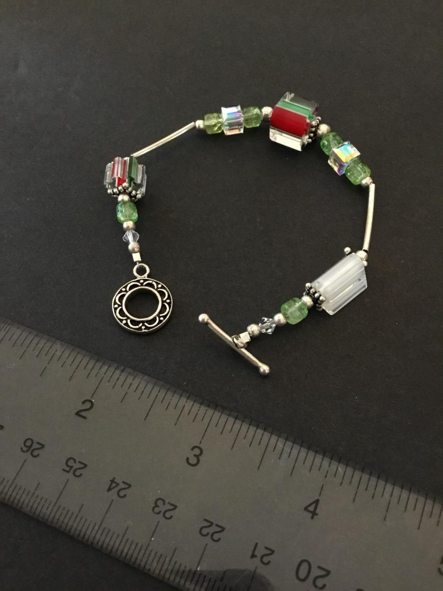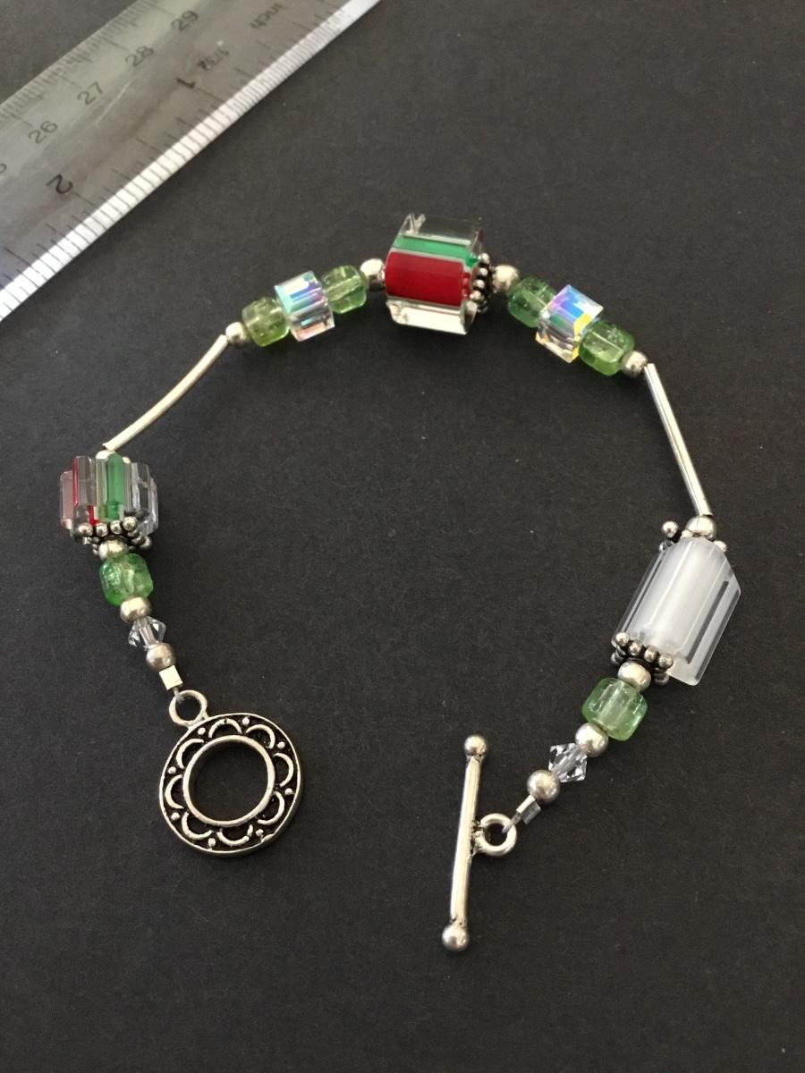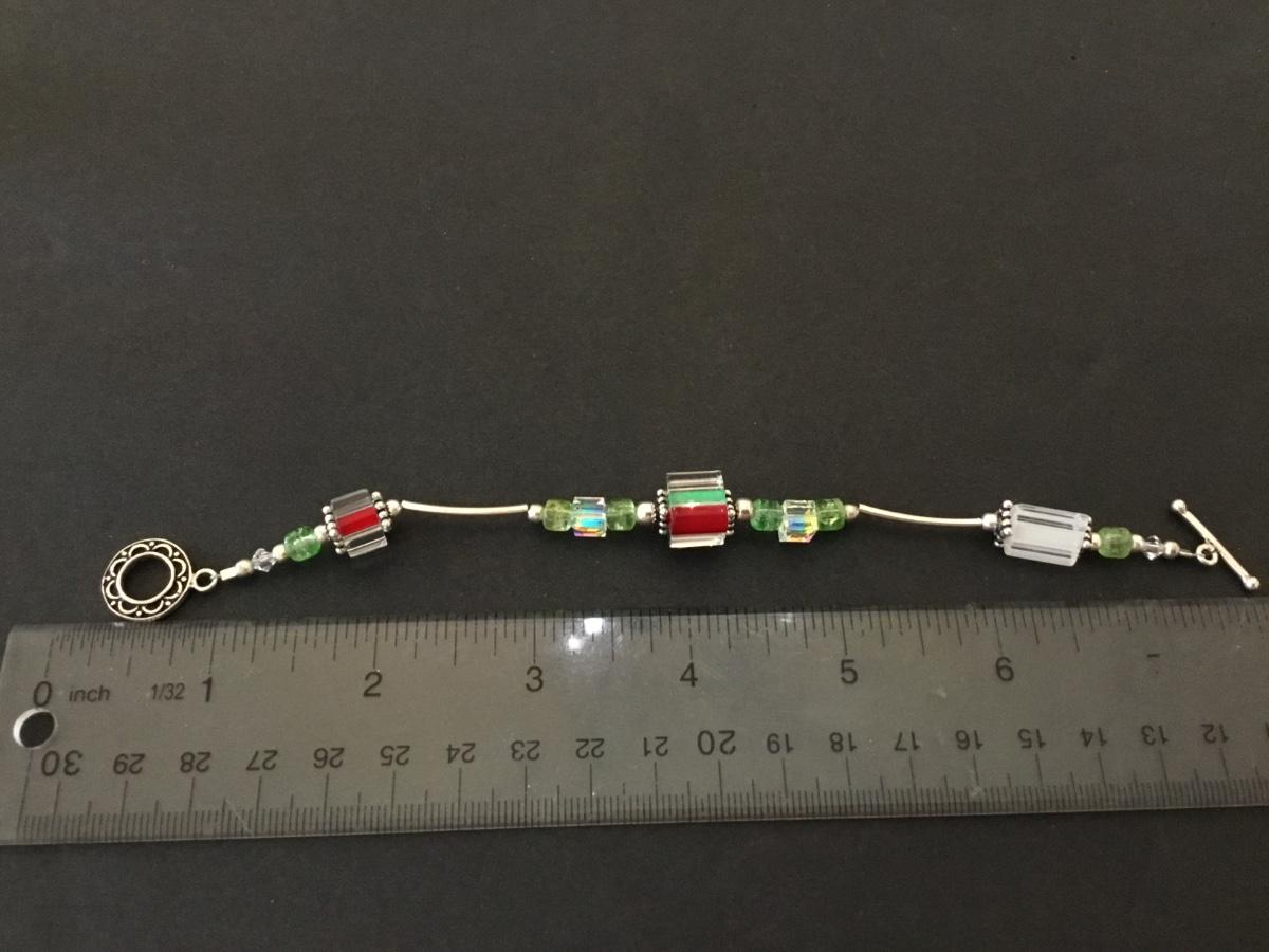 Beautiful, green crystal red accent crystal bead toggle bracelet very nice very beautiful