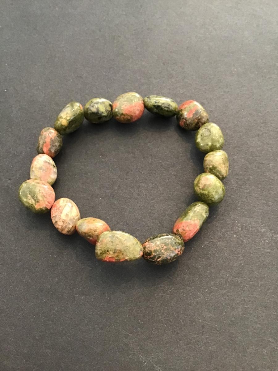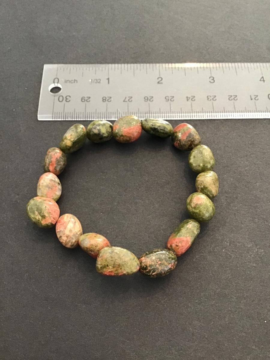Beautiful, green polished stone stretchy bracelet. Please see attached photos.