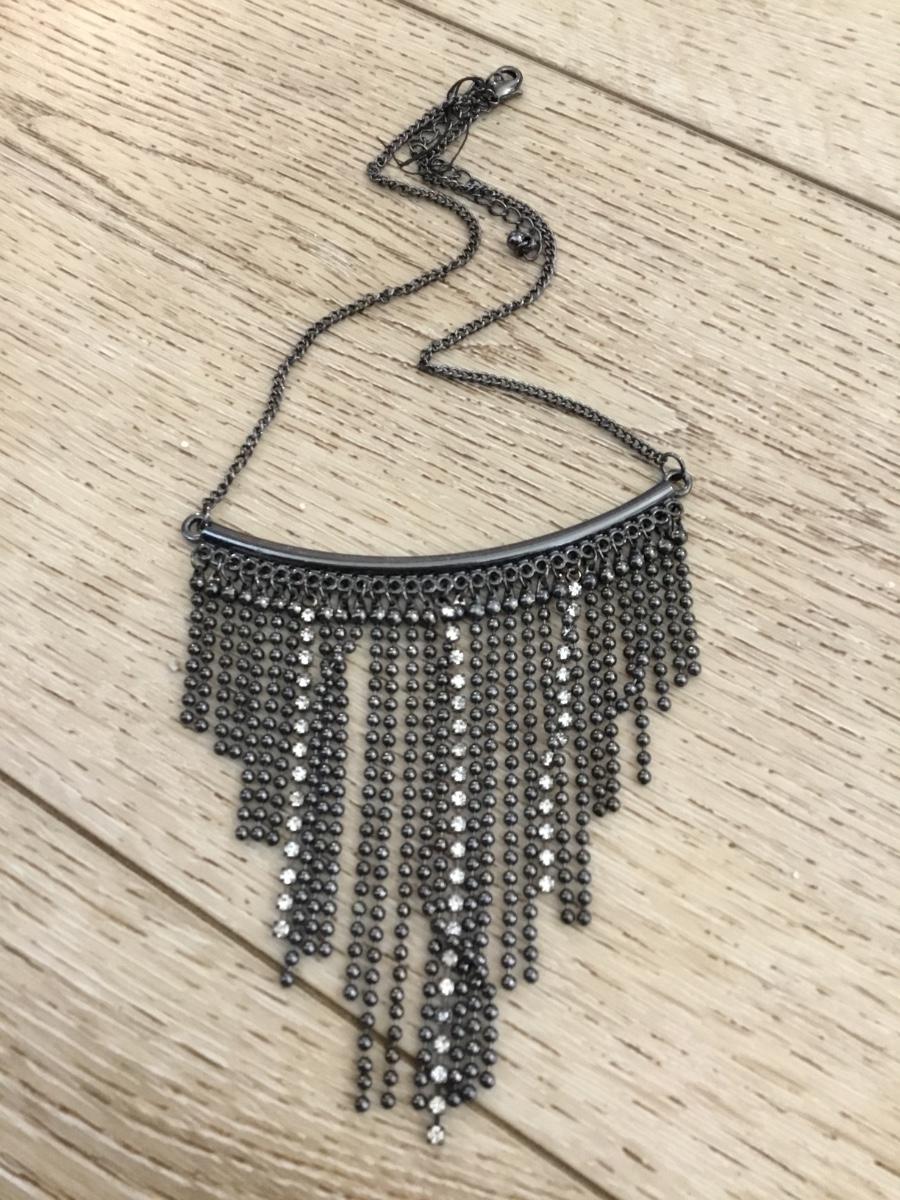 Beautiful, gunmetal, gray, toned, rhinestone statement, necklace