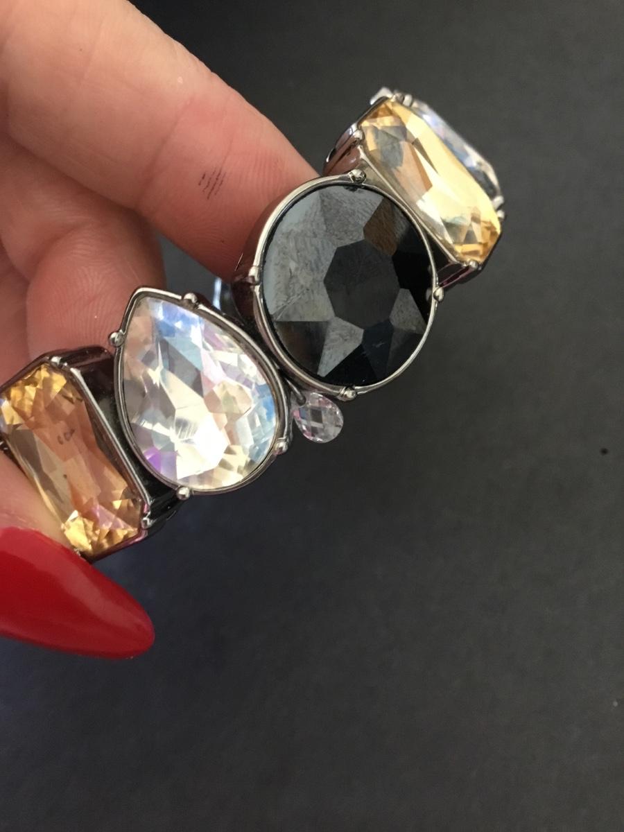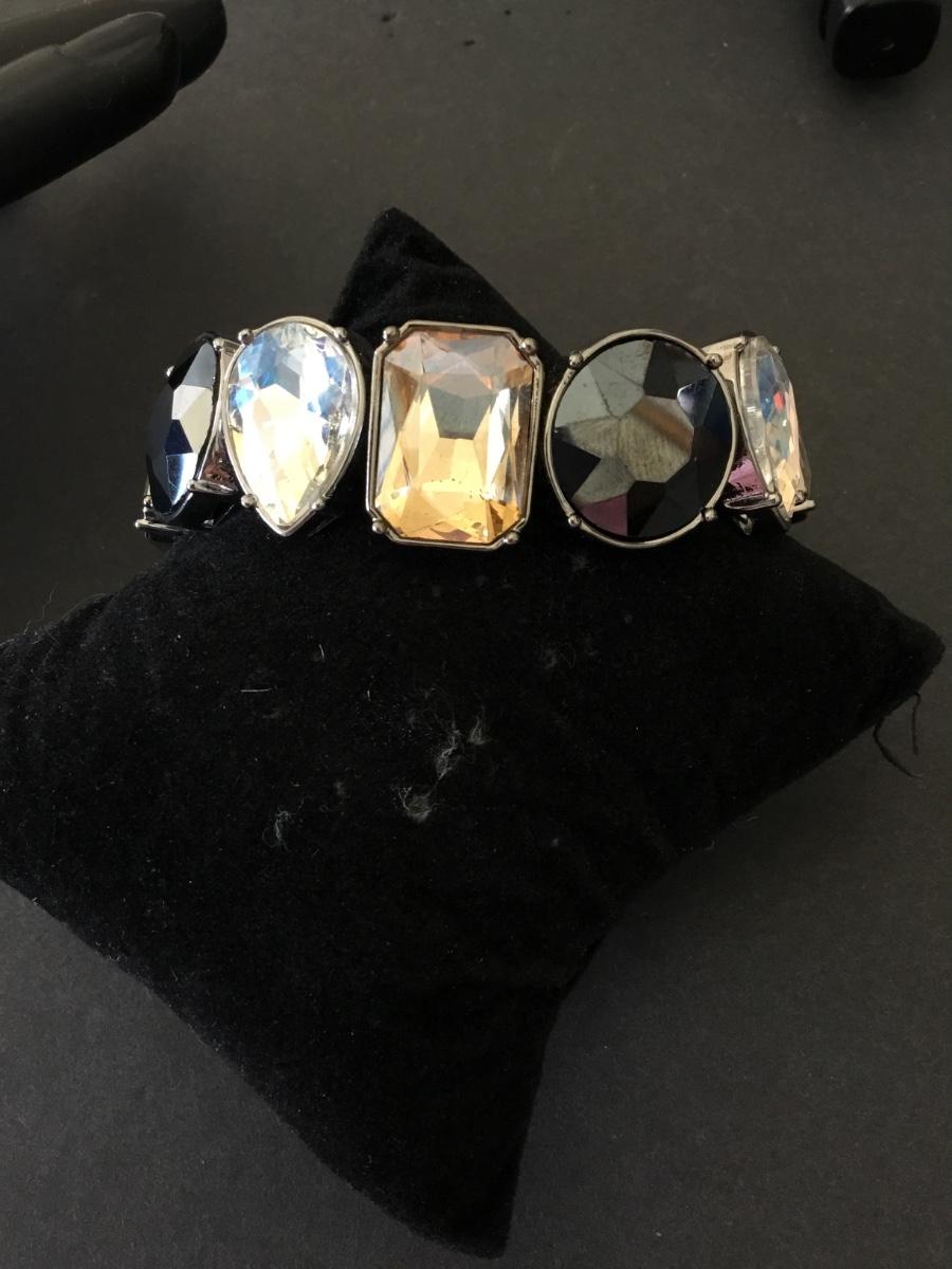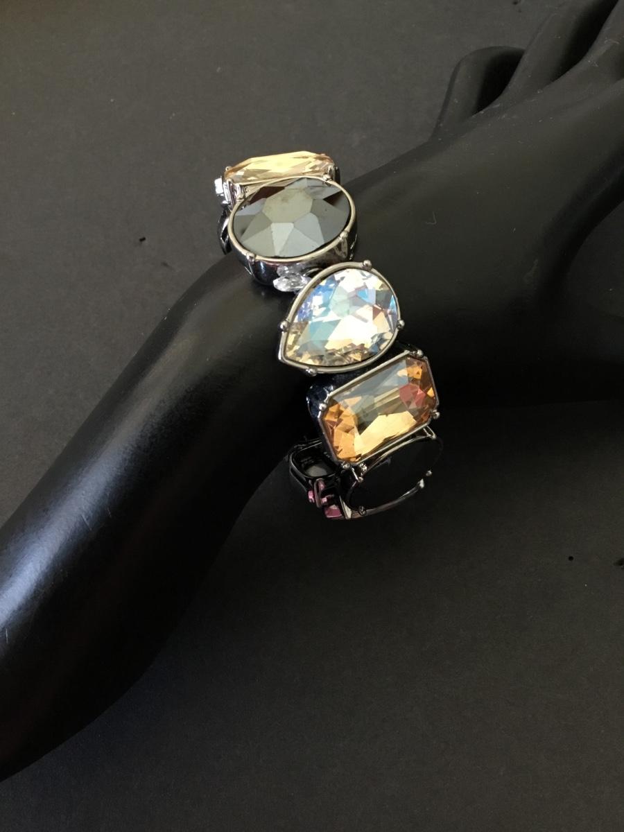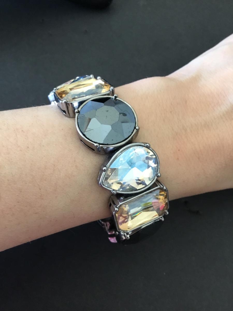 Beautiful, gunmetal, gray toned, rhinestone stretch bracelet