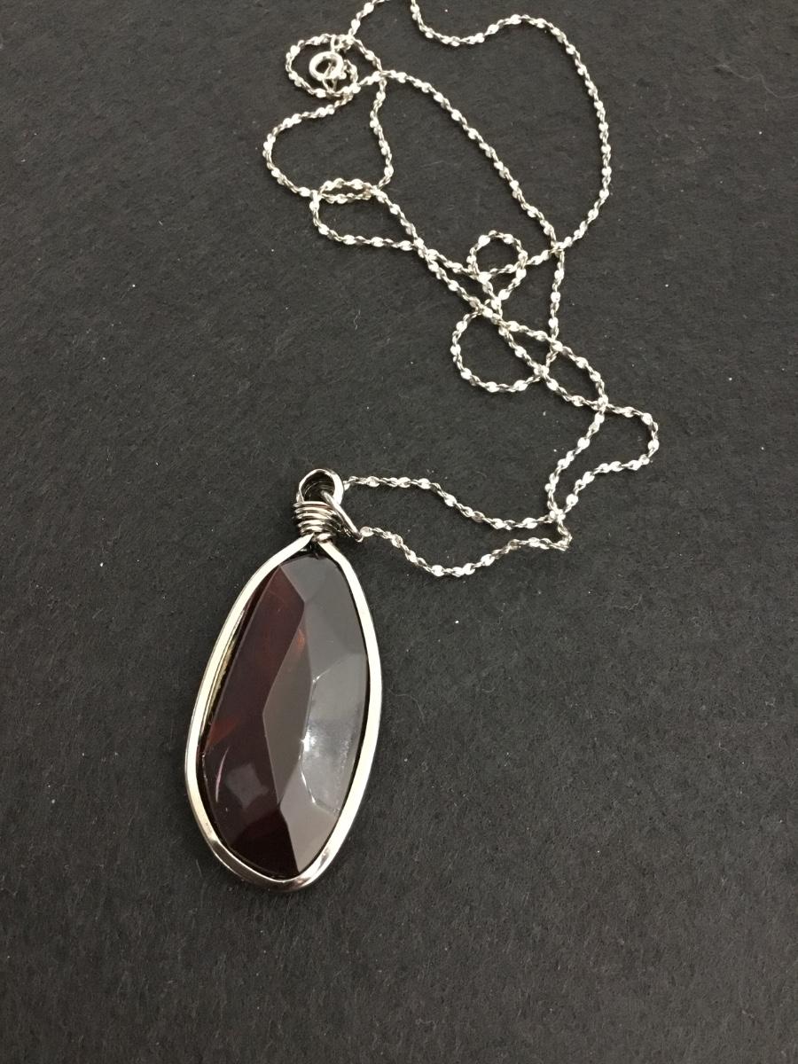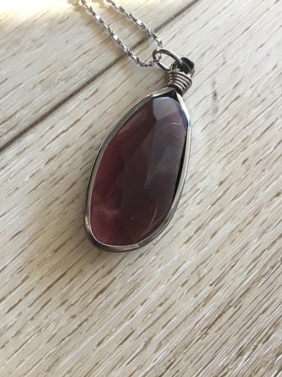 Beautiful, gunmetal, gray toned with beautiful, rose, quartz, pendant, healing stone necklace