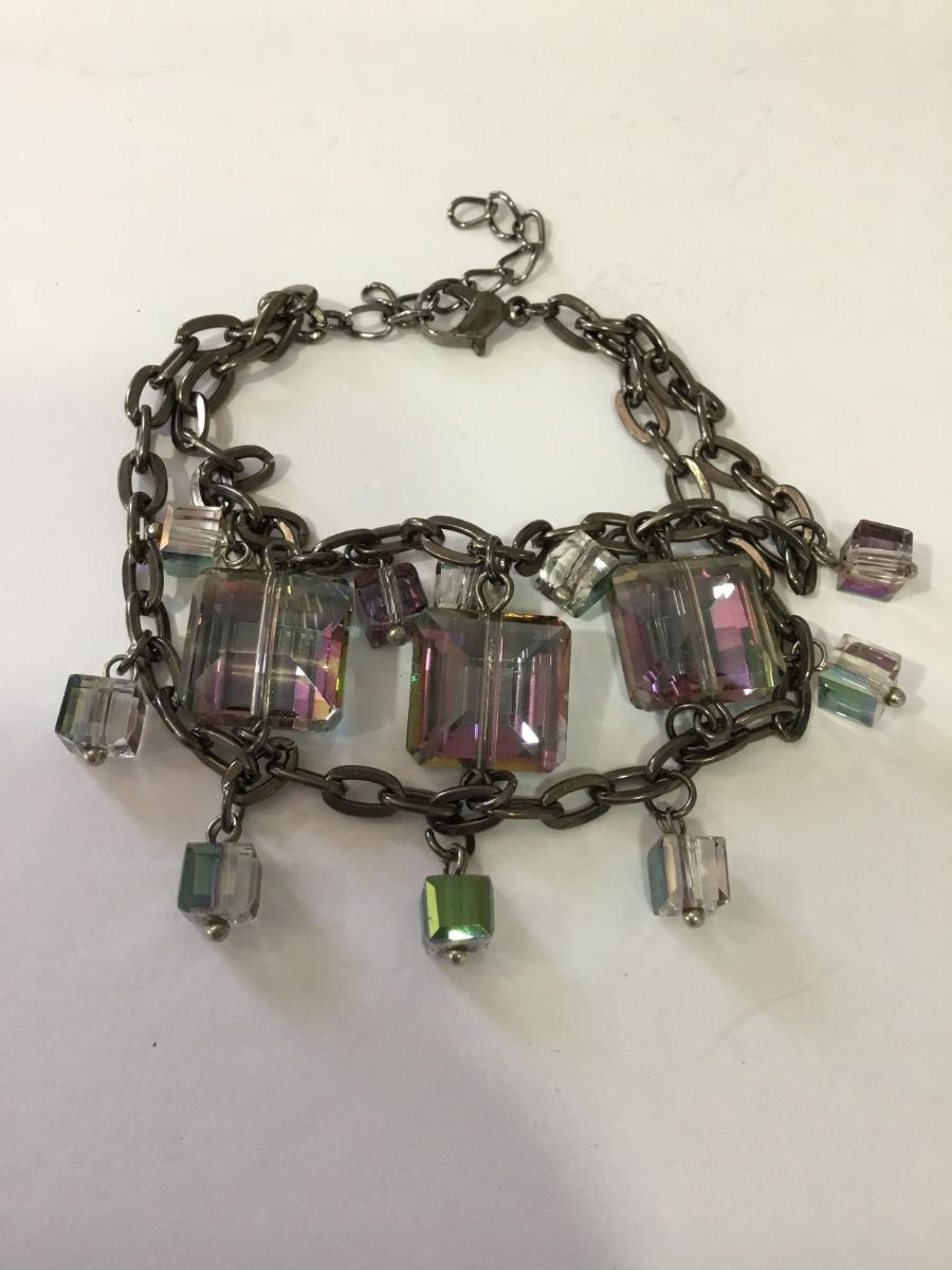 Beautiful gunmetal, gray watermelon, crystal charm bracelet very beautiful