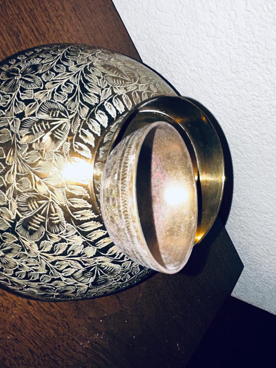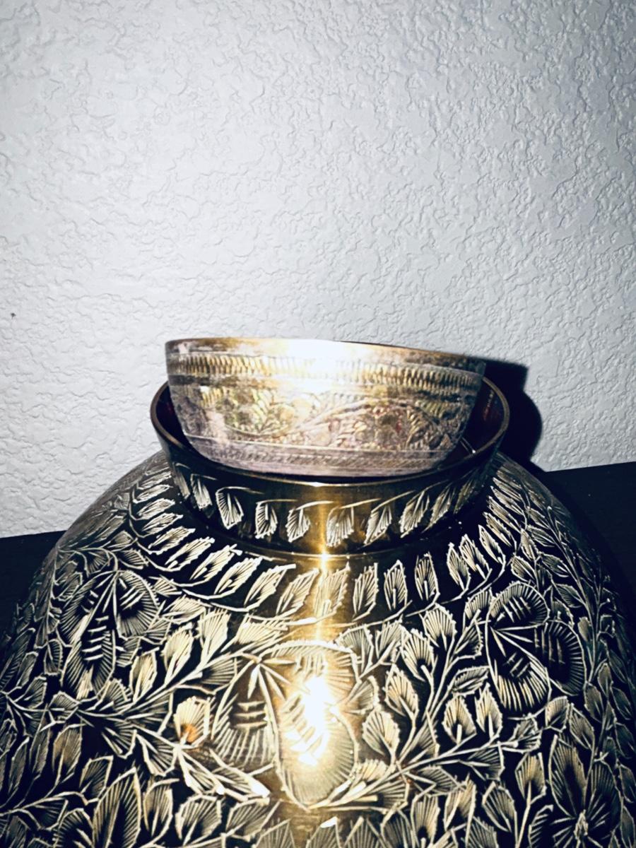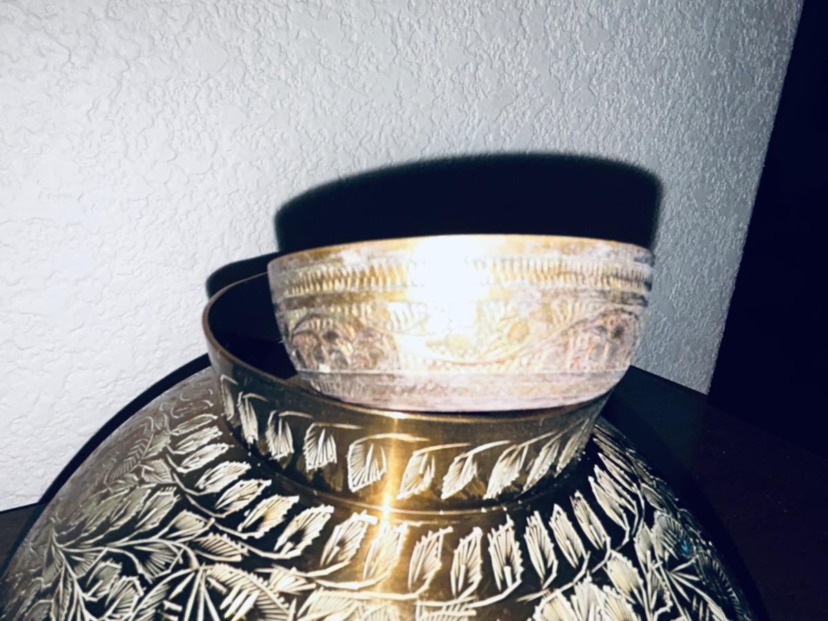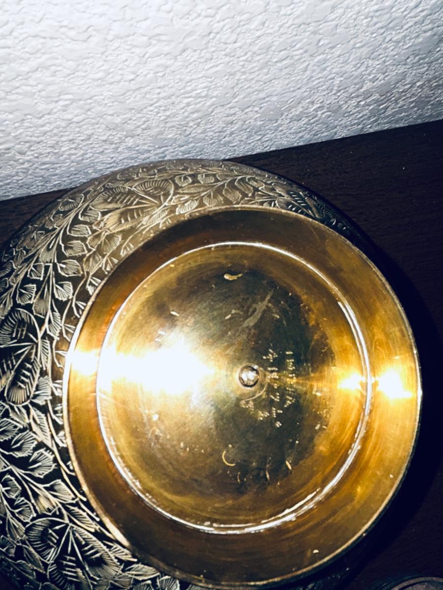 BEAUTIFUL HAND ETCHED ART BRASS BOWL, BRASS QUAIL AND SMALL DISH