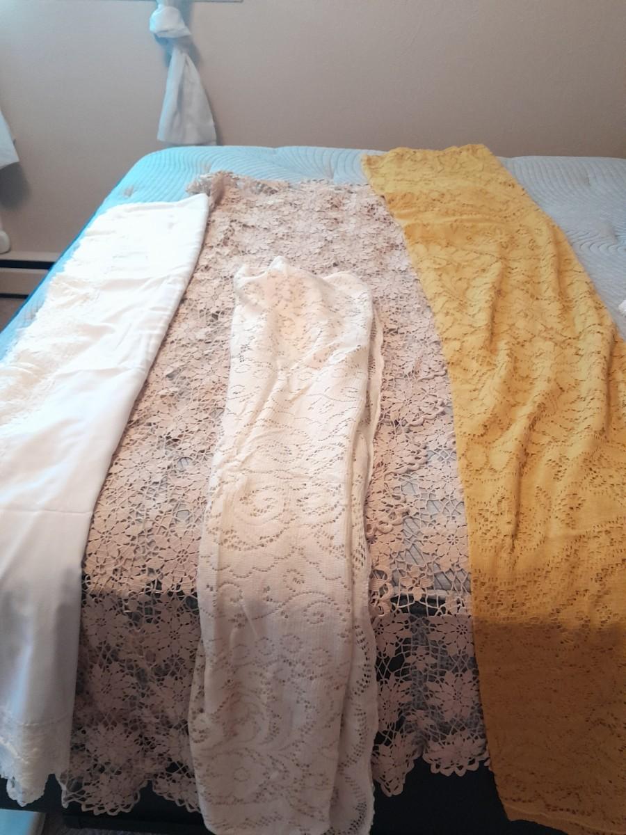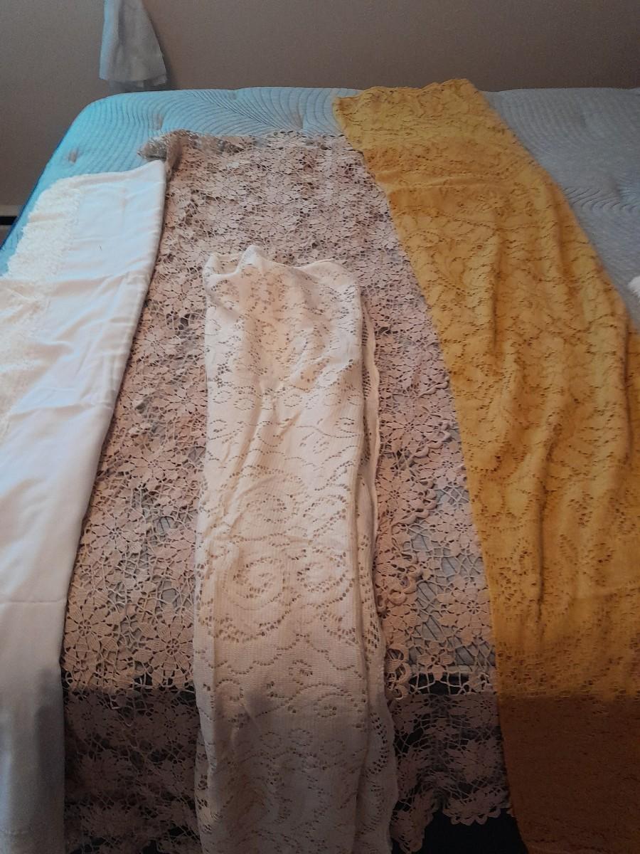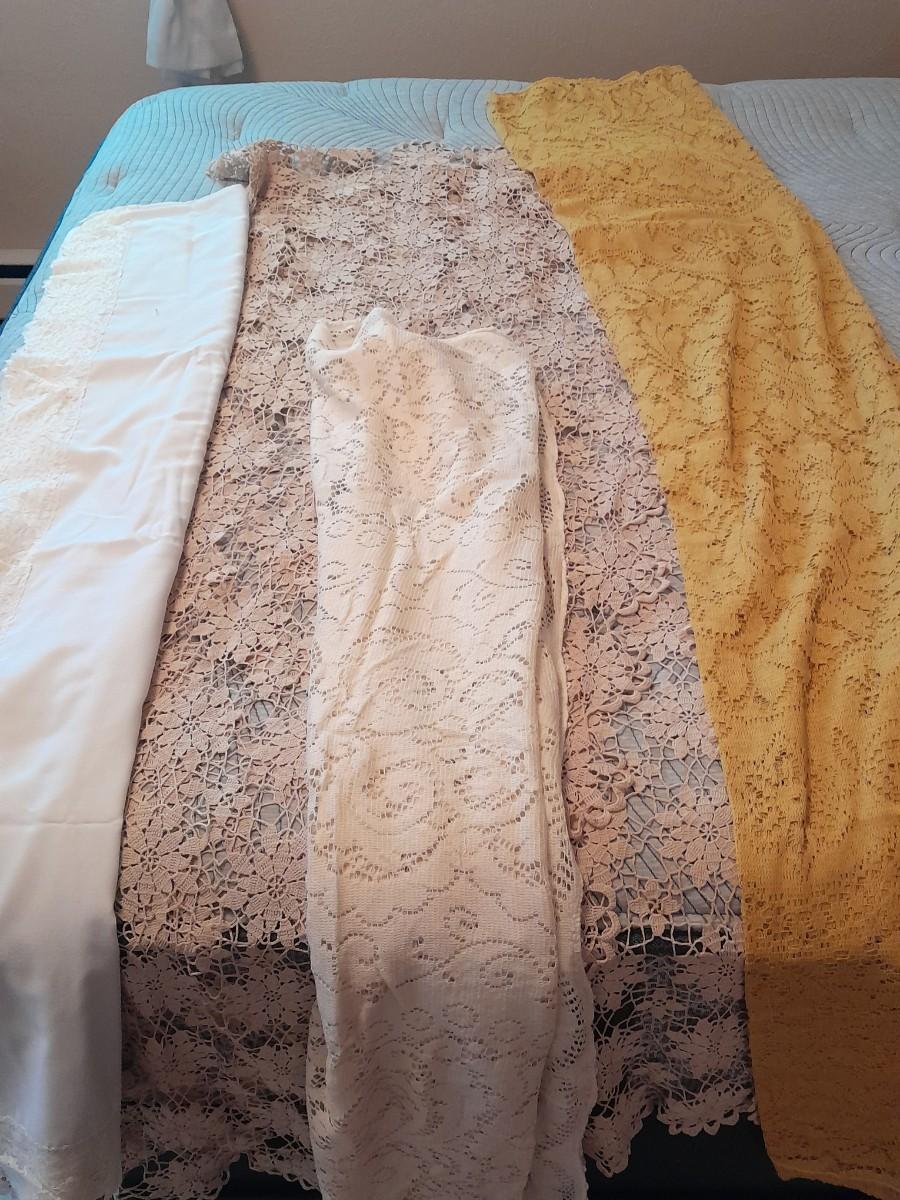 BEAUTIFUL CROCHETED TABLECLOTH AND OTHER TABLE LINENS