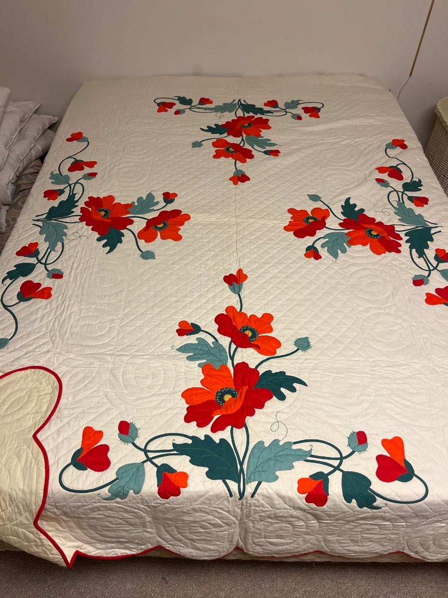 Beautiful hand stitched Poppy quilt