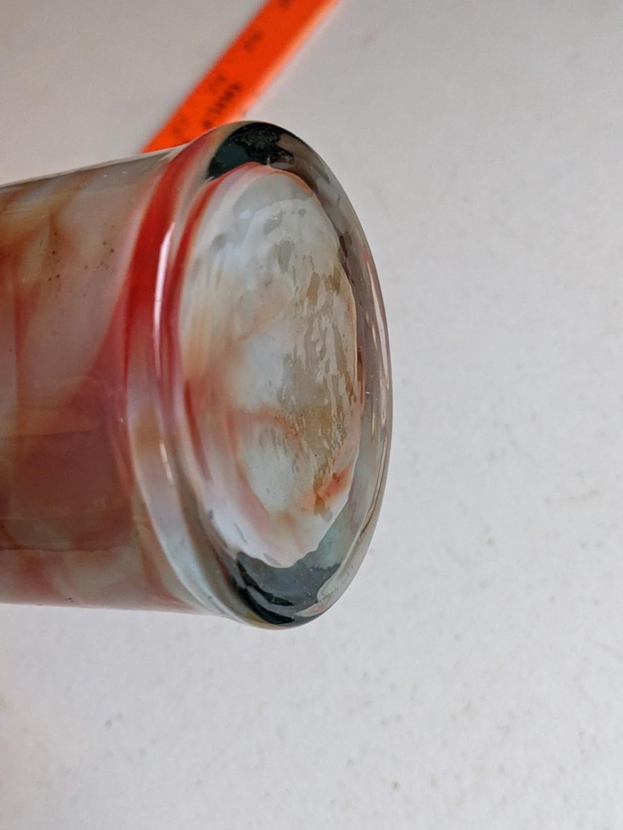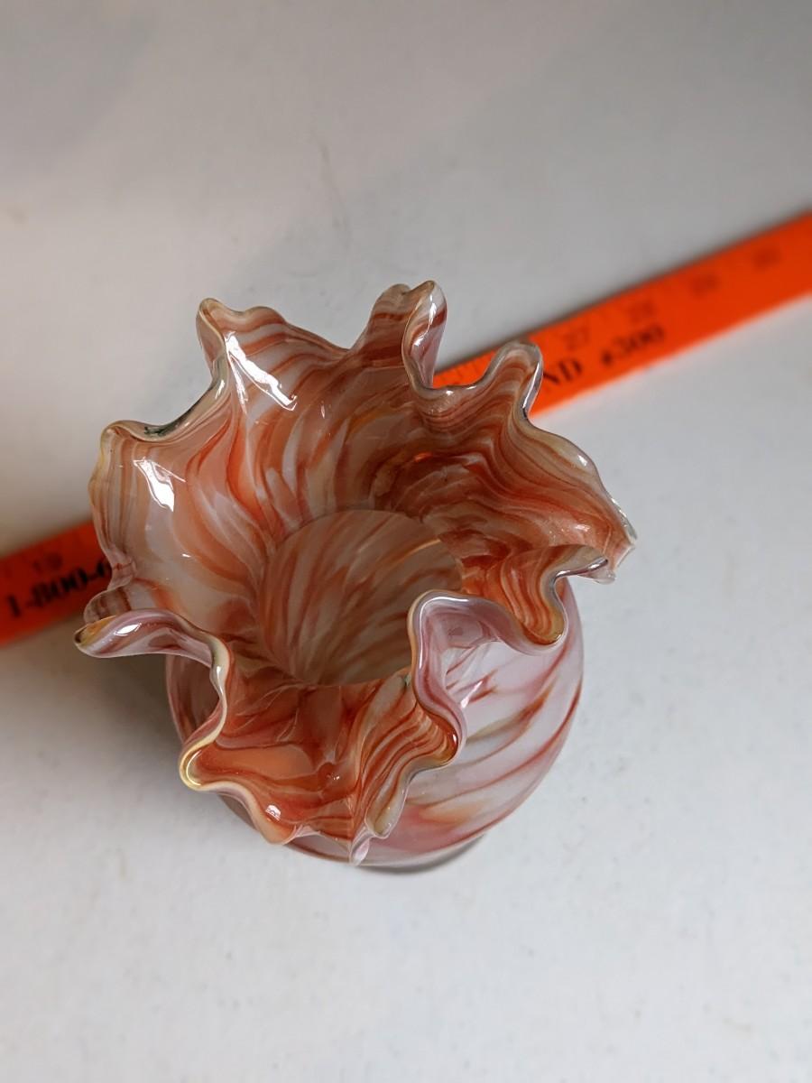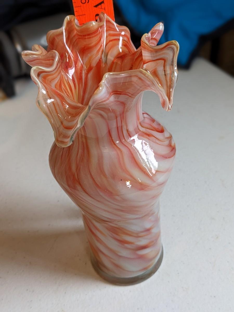 Beautiful Hand-Blown Art Glass Vase - White & Dark Amber with Ruffled Rim