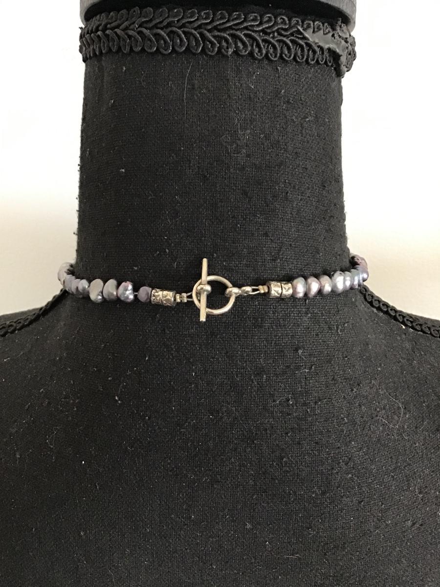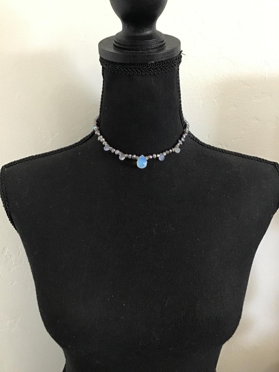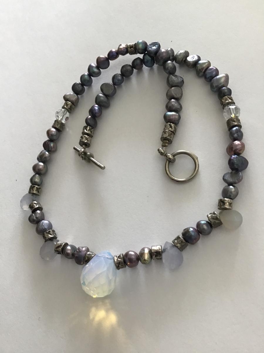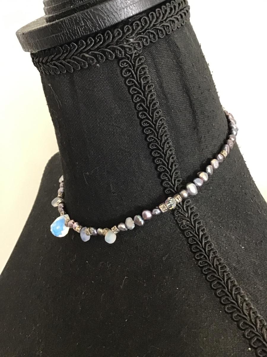 Beautiful handcrafted, genuine, pearl, crystal bead, moonstone, choker, toggle necklace