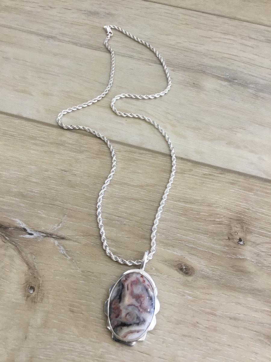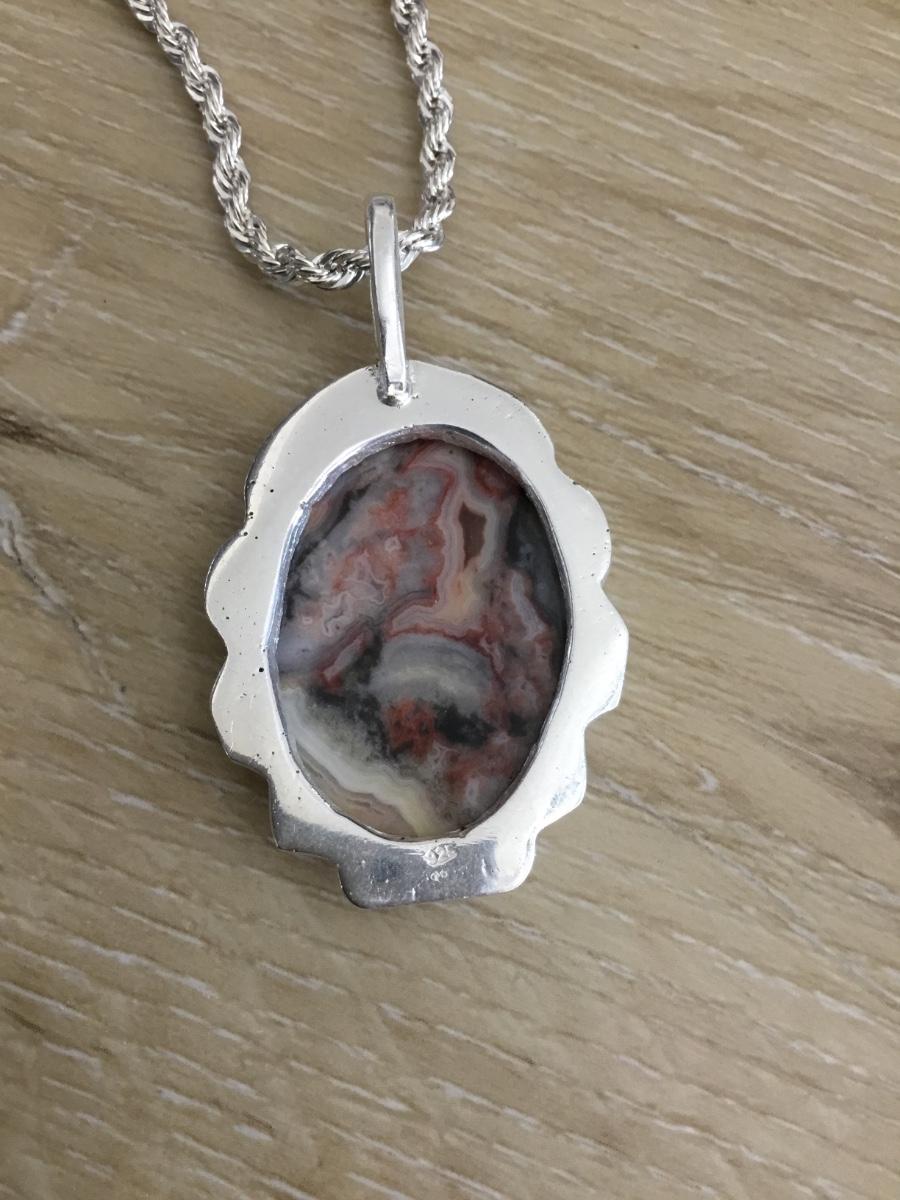 Beautiful, heavy thick sterling, silver chain with 925 sterling, silver pendant and precious stone