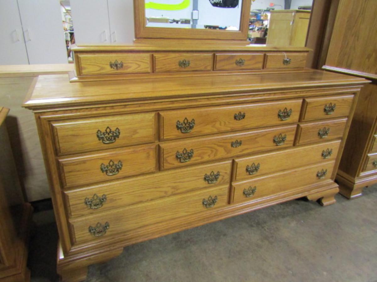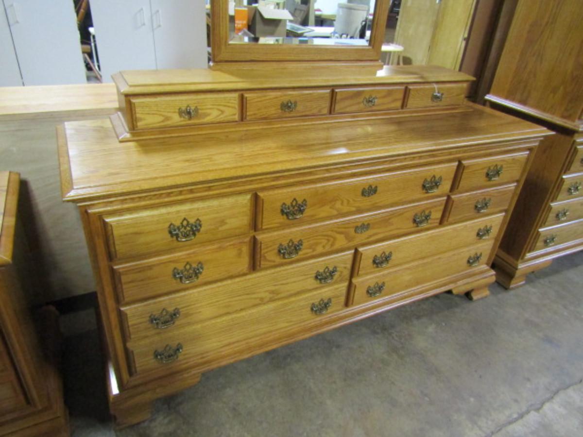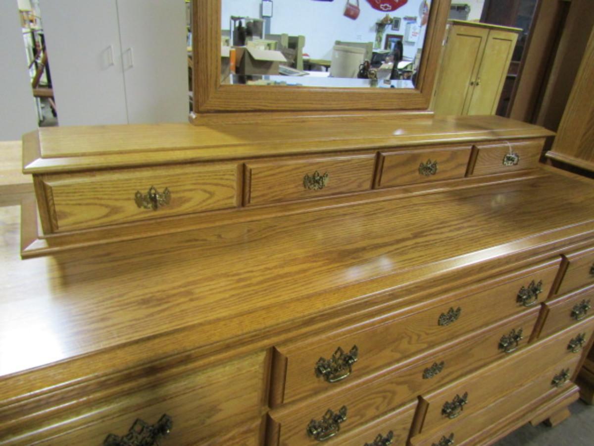 Beautiful, High Quality Solid Wood (Oak) Stretch Dresser with Lined Drawer Gallery and Beveled Mirror
