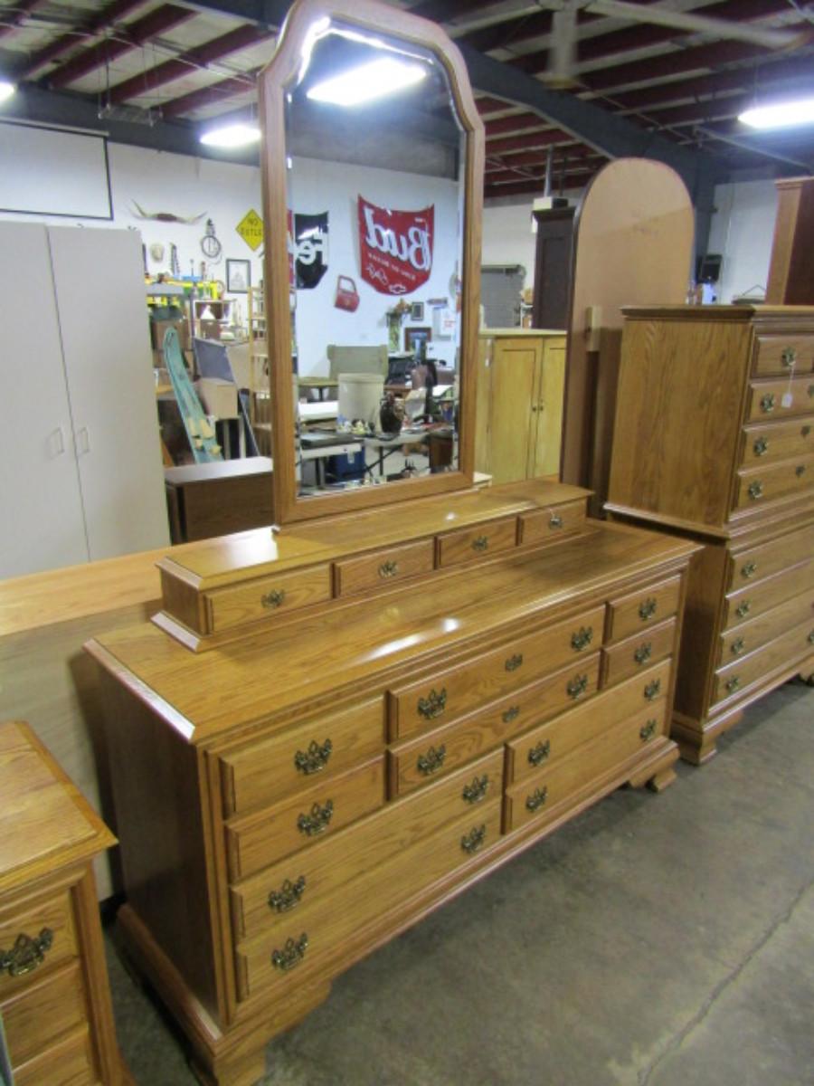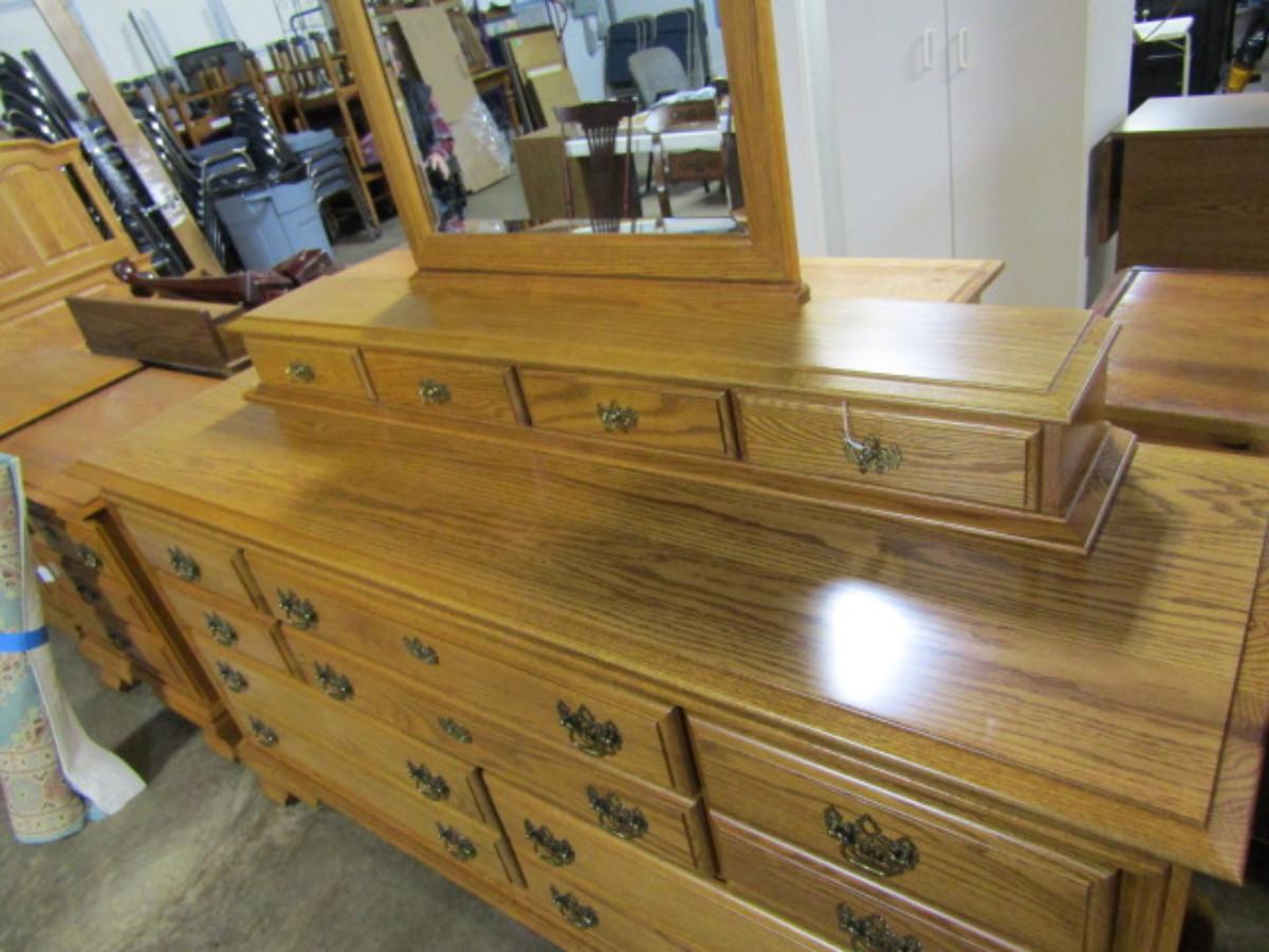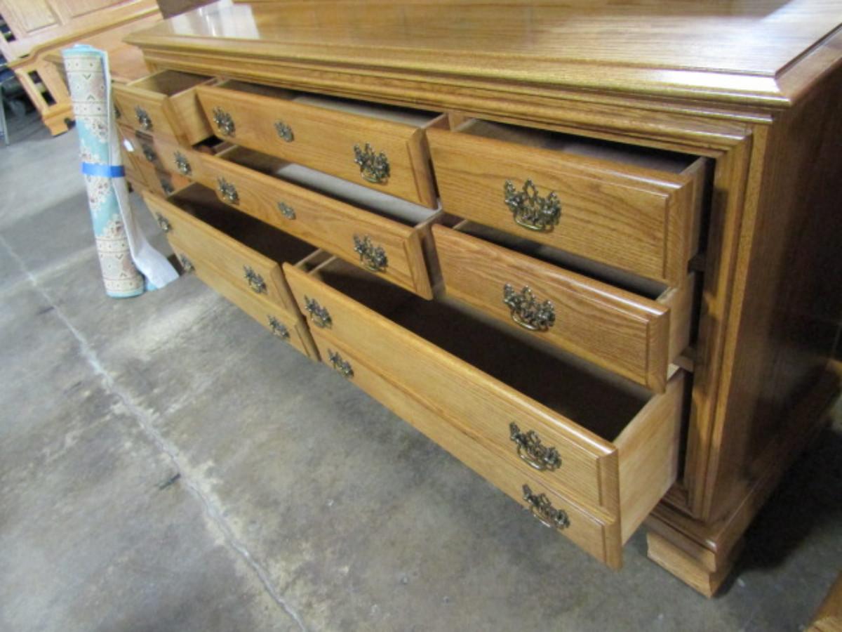 Beautiful, High Quality Solid Wood (Oak) Stretch Dresser with Lined Drawer Gallery and Beveled Mirror