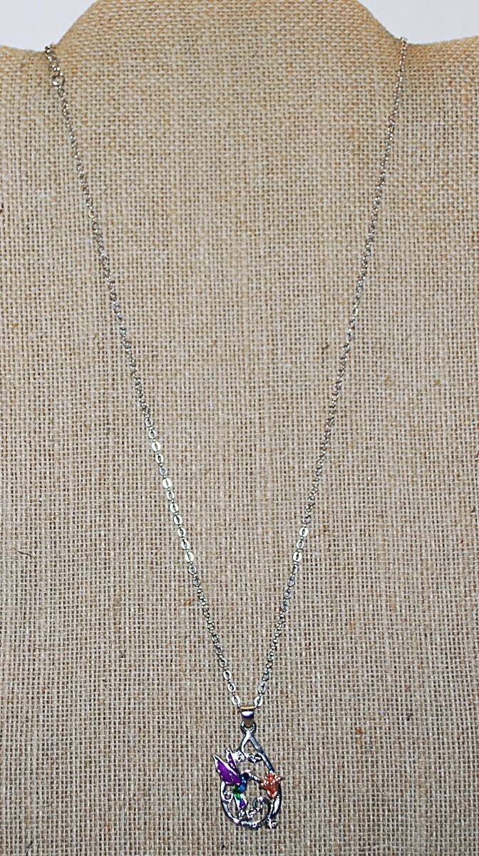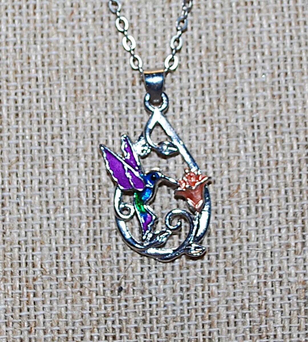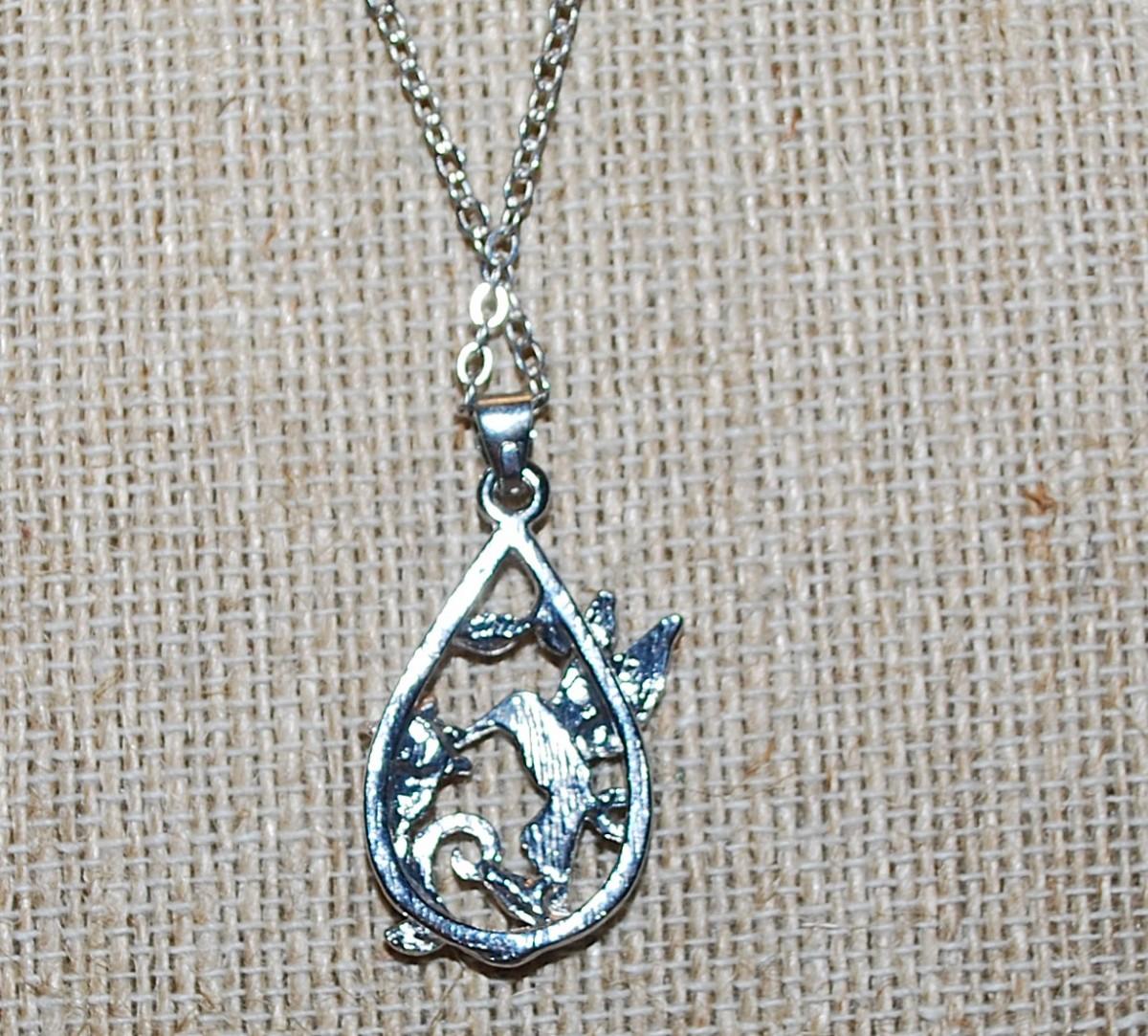 Beautiful HUMMINGBIRD NECKLACE on a Silver Tone Teardrop Setting and Lobster Clasp 20" L