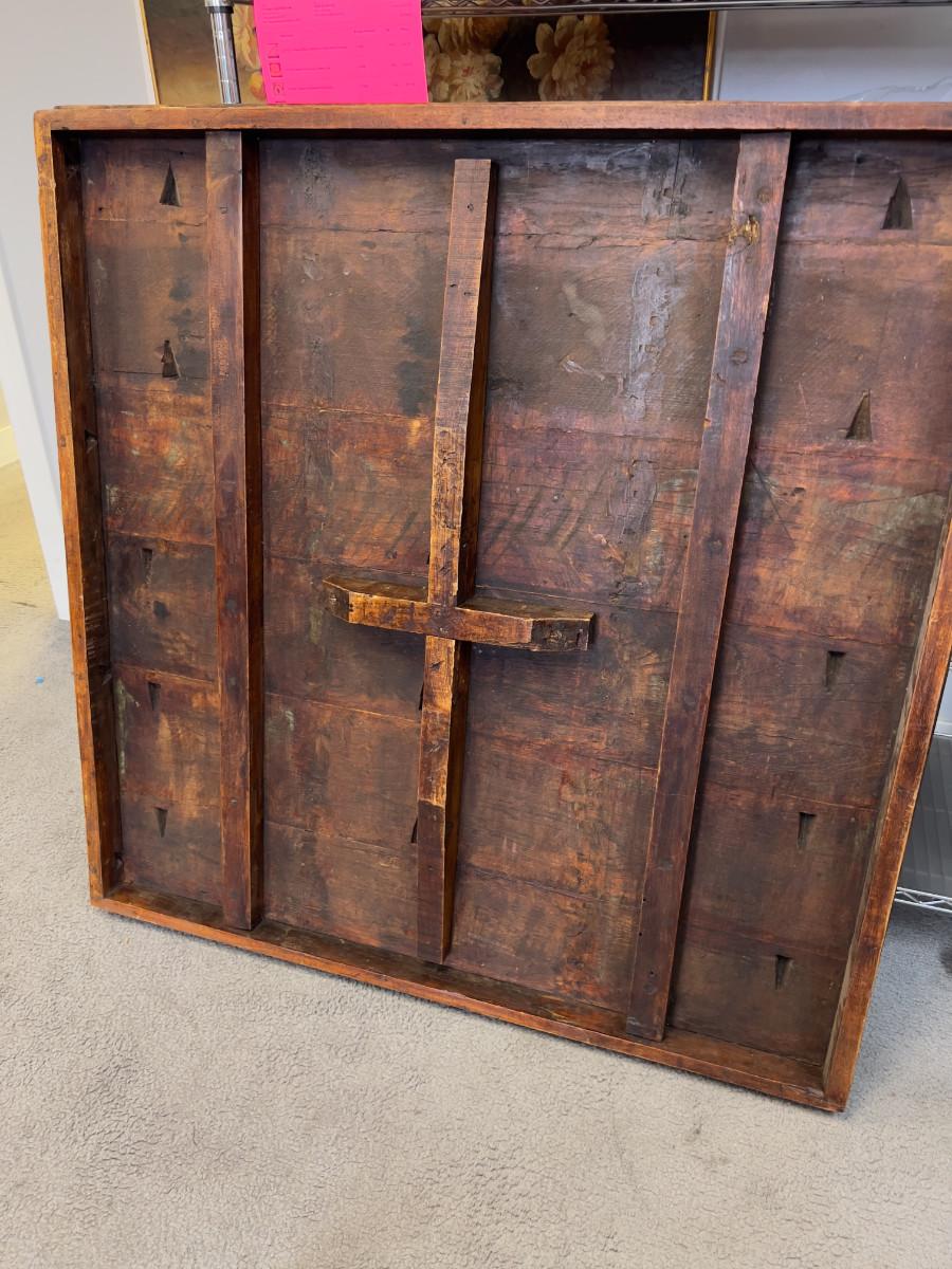 Measures 48" Square on the Top and Stands 30" tall Some Pieces missing, its dry and needs oiled. This piece is IMPRESSIVE!!!