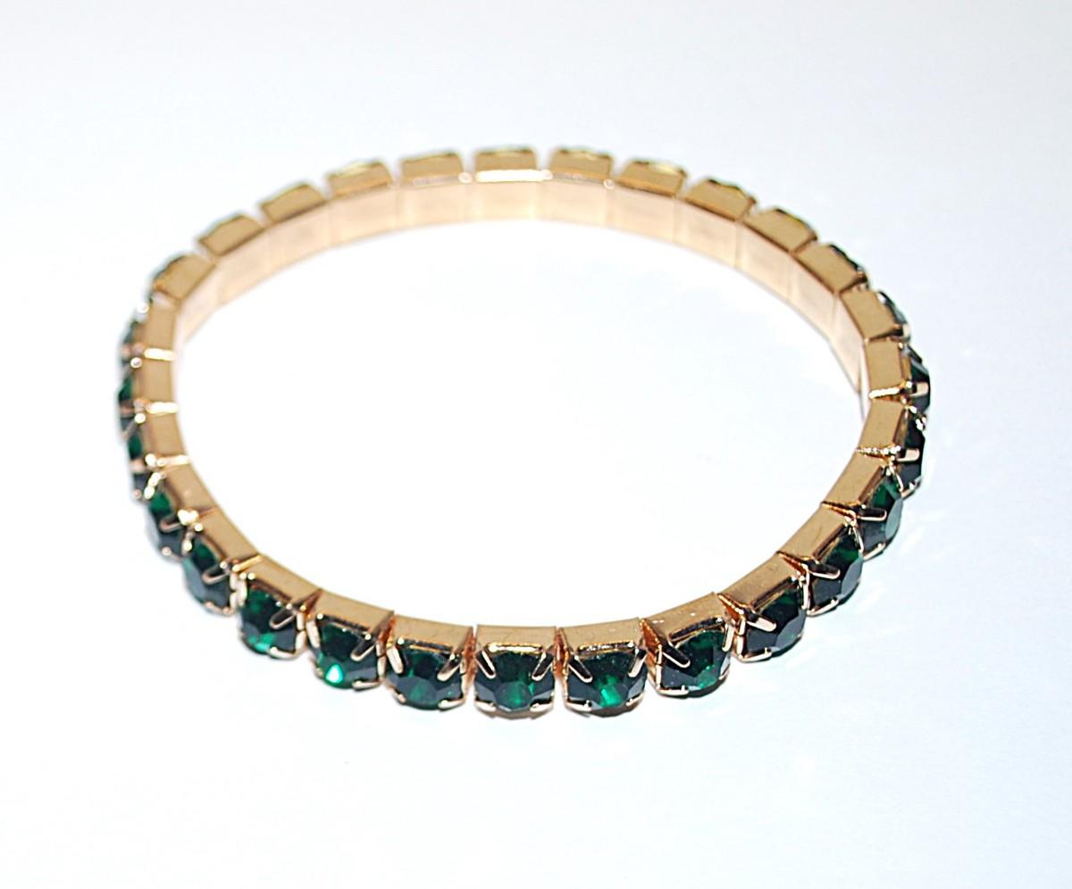 Beautiful Infinity-Style Green Square Beveled Stones ELASTIC BRACELET (2" Opening) with a Gold Tone Setting