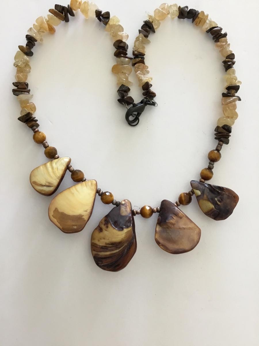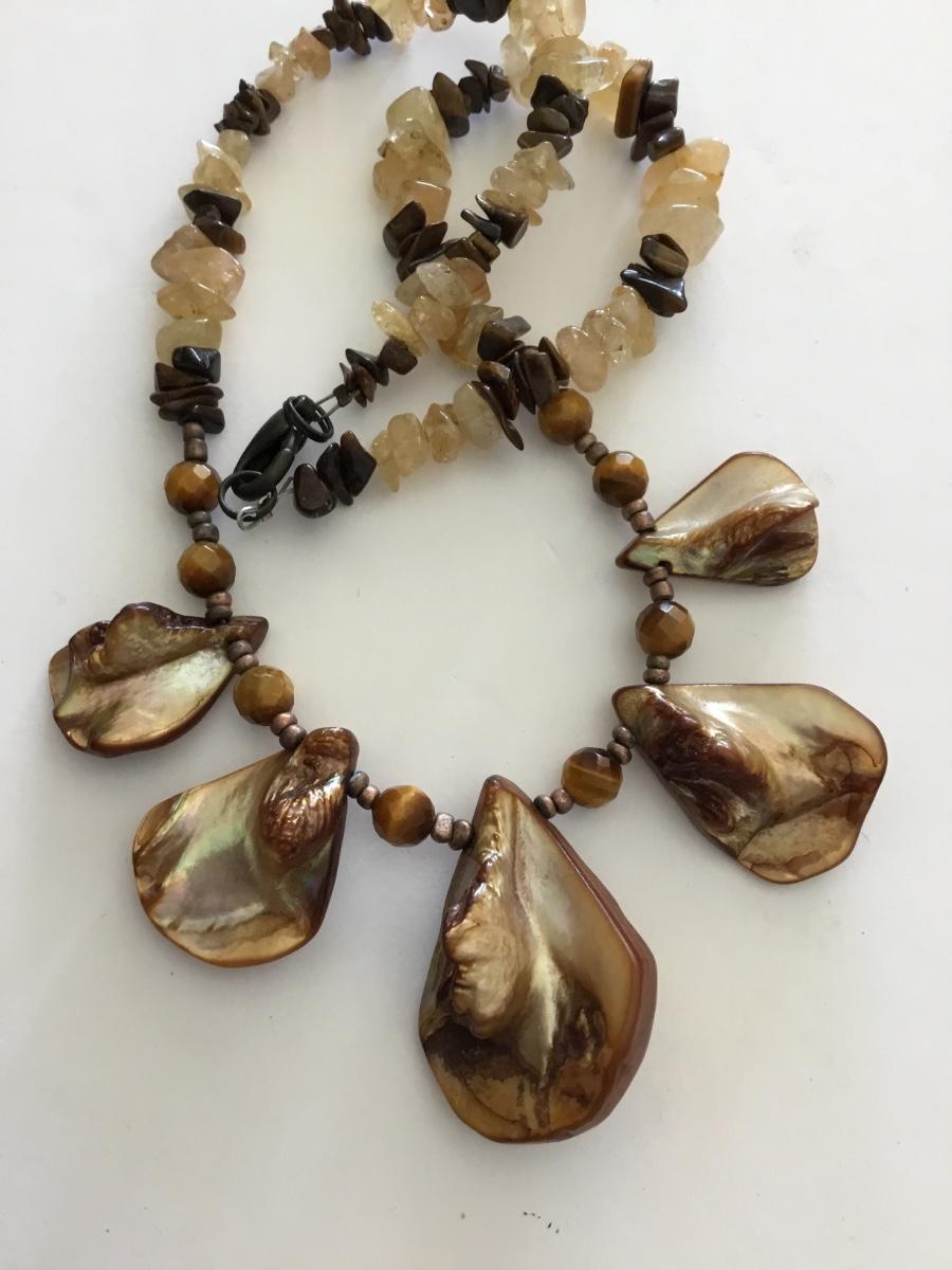 Beautiful iridescent Avalone, or mother of pearl teardrop shaped pieces necklace very beautiful