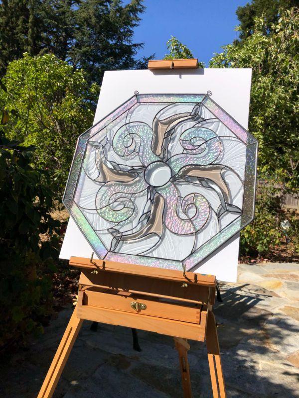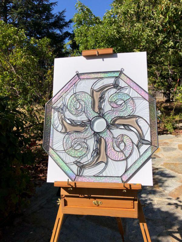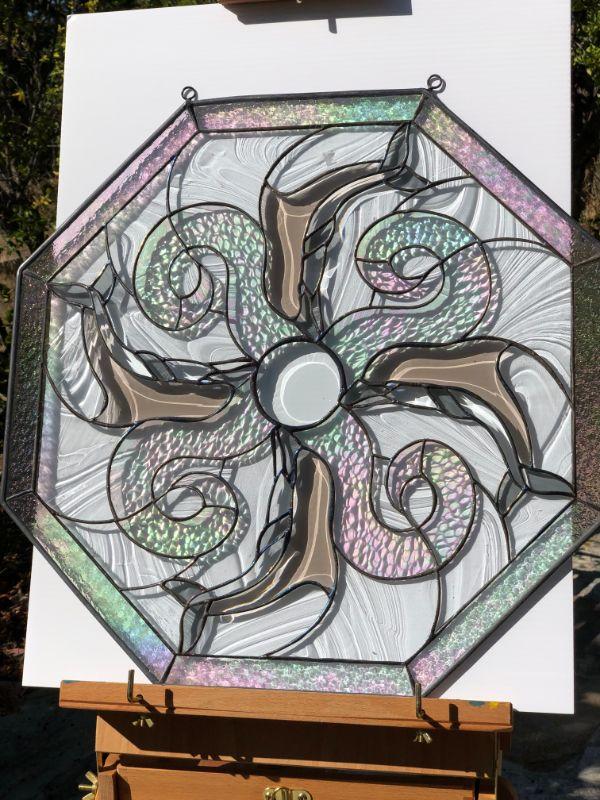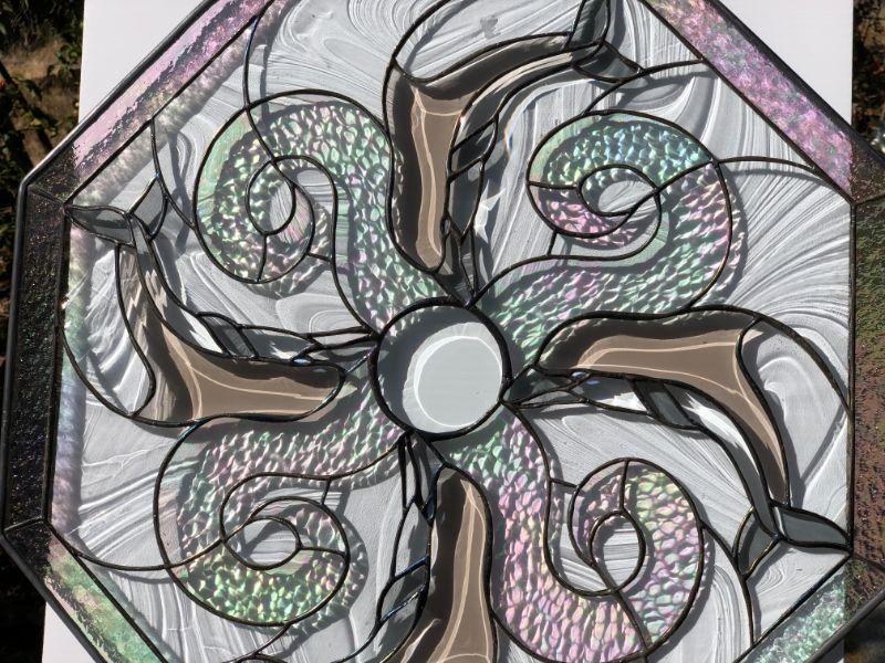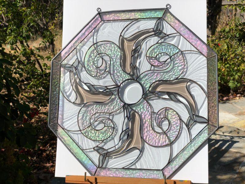 Beautiful Iridescent Dolphins Octagon Stained Glass Window