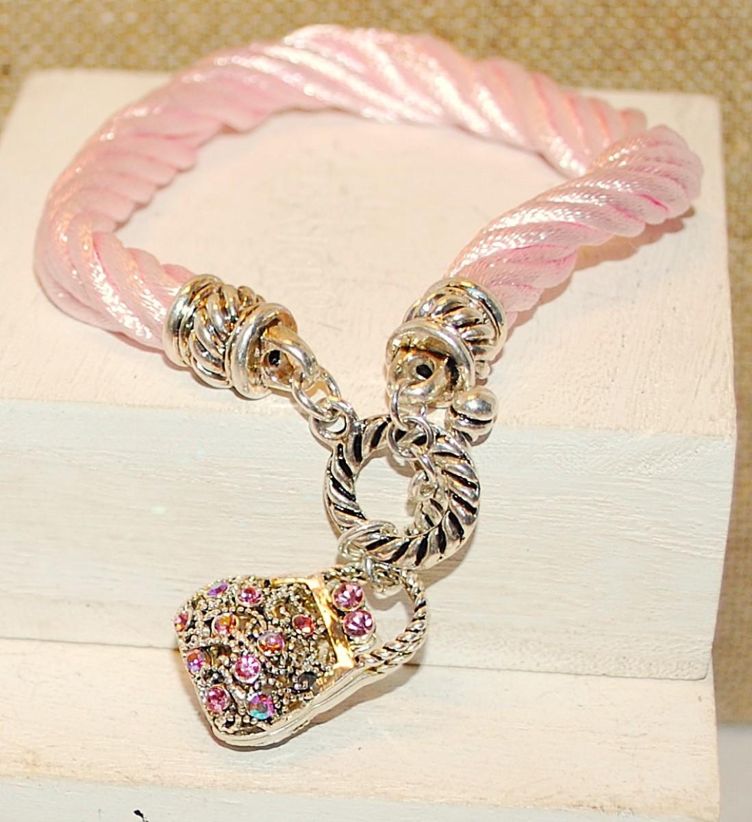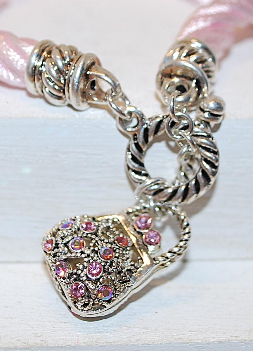 Beautiful Iridescent Pink Stones PURSE Bracelet (6") with a Toggle Silver Tone Clasp