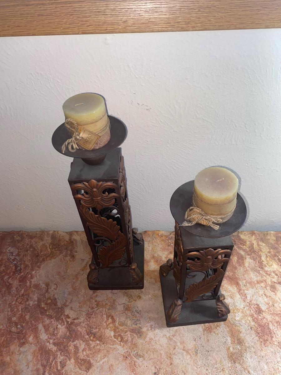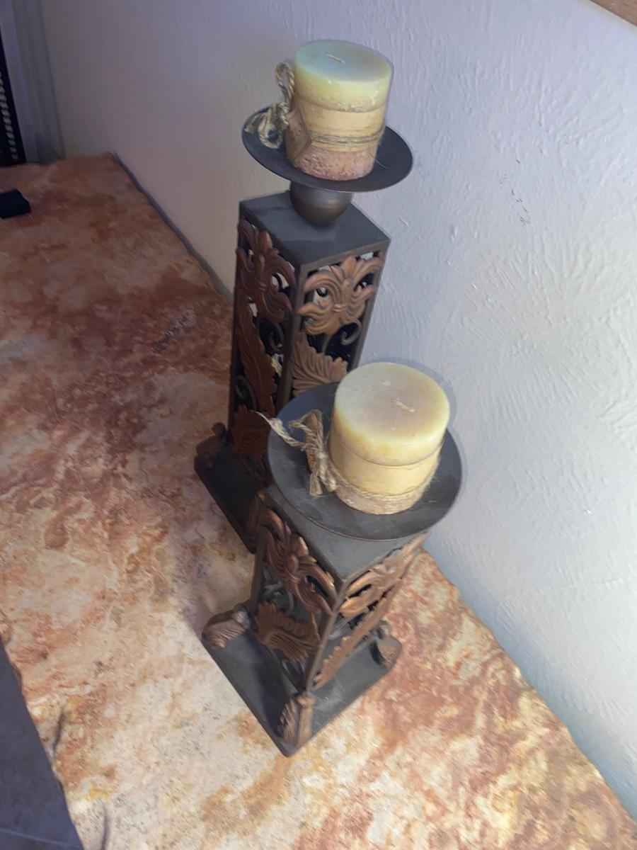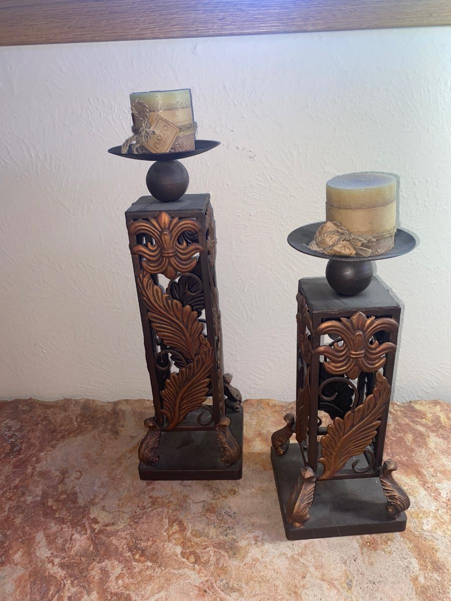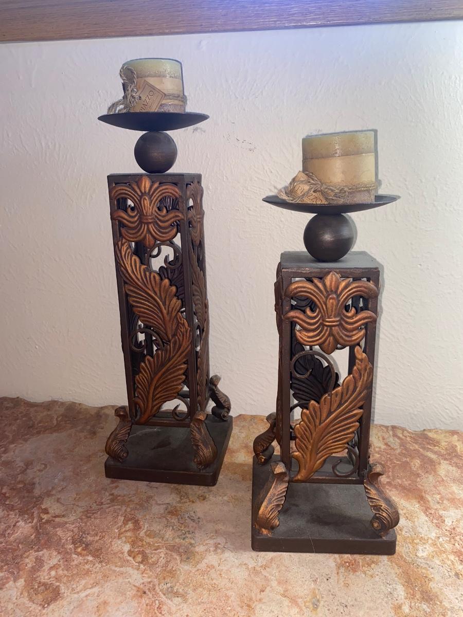 BEAUTIFUL IRON AND COPPER CANDLE HOLDERS