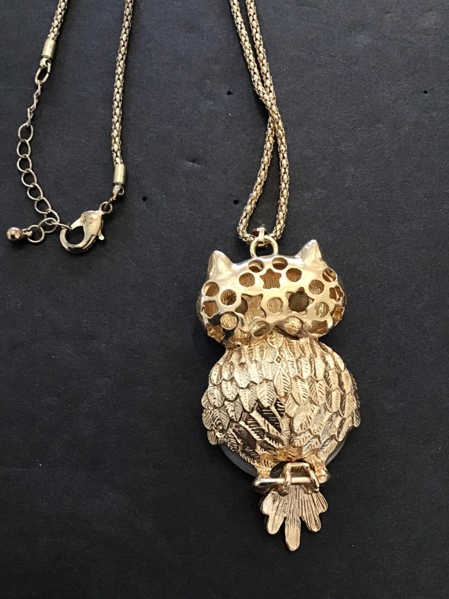 Beautiful Jelly belly type owl pendant on goldtone necklace