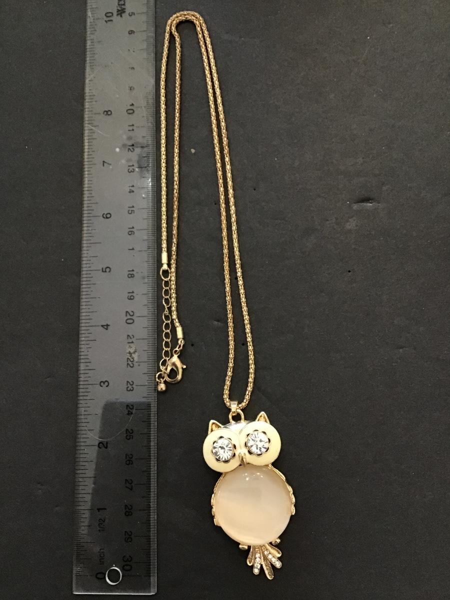 Beautiful jelly, belly tight owl, pendant on goldtone necklace. Please see attached photos.