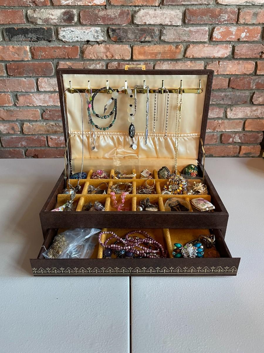 Beautiful Jewelry Box Full of Costume Jewelry - Bracelets, Pins and Necklaces