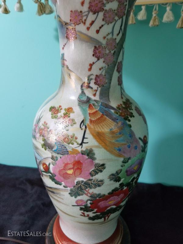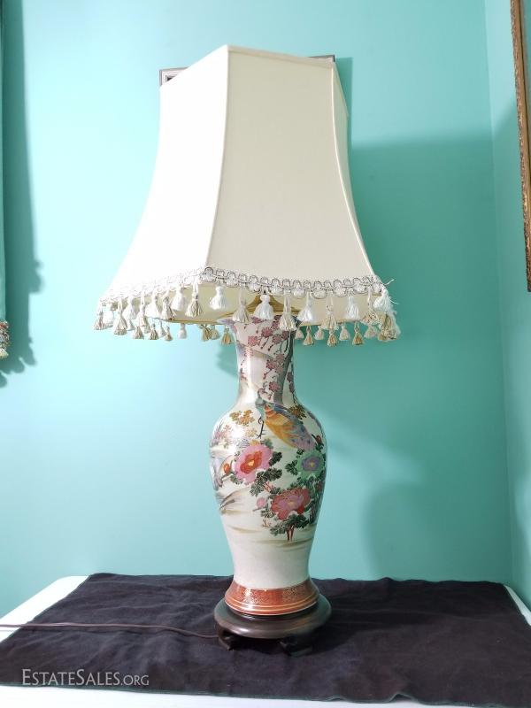 Peacock and flower Asian Lamp with shade