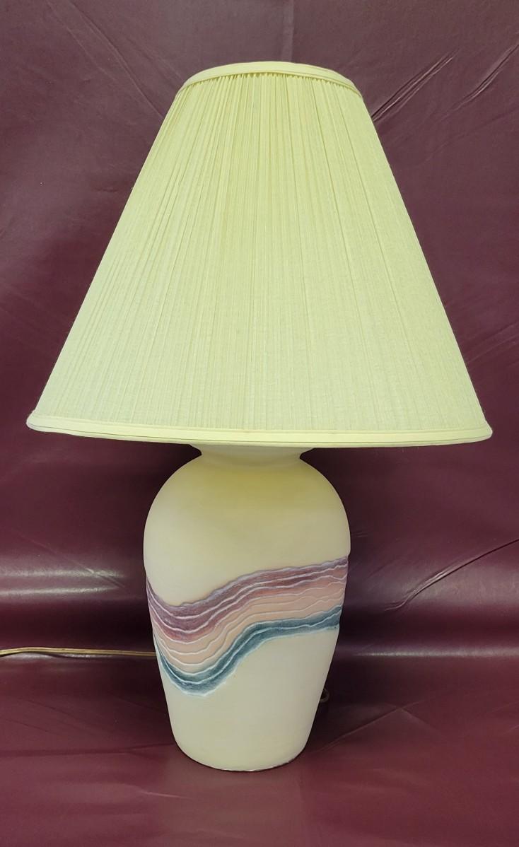 This lamp has a southwestern style look to it. Light is functional. Lamp shade is in great shape.