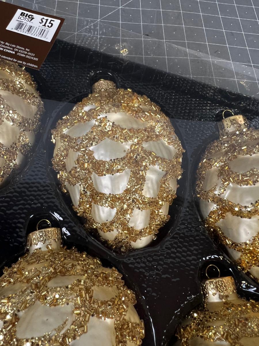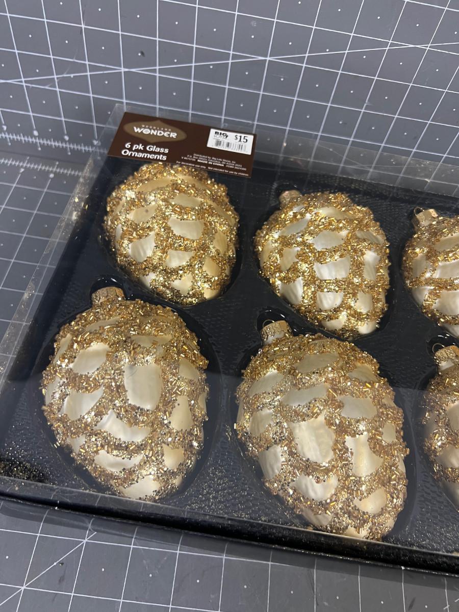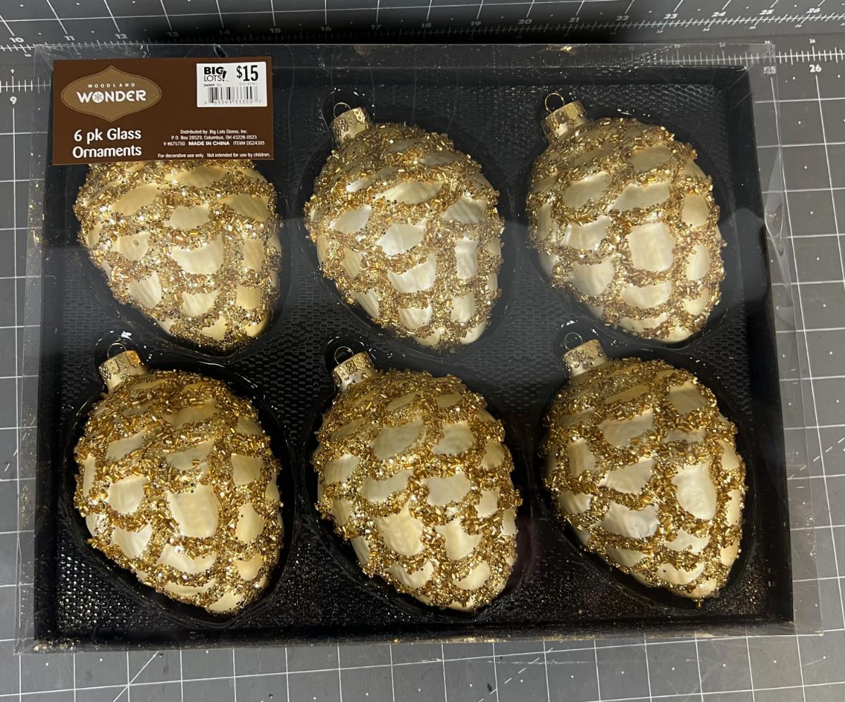Beautiful Large 6 pack of Gold Pine Cones with Glitter