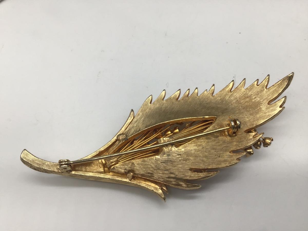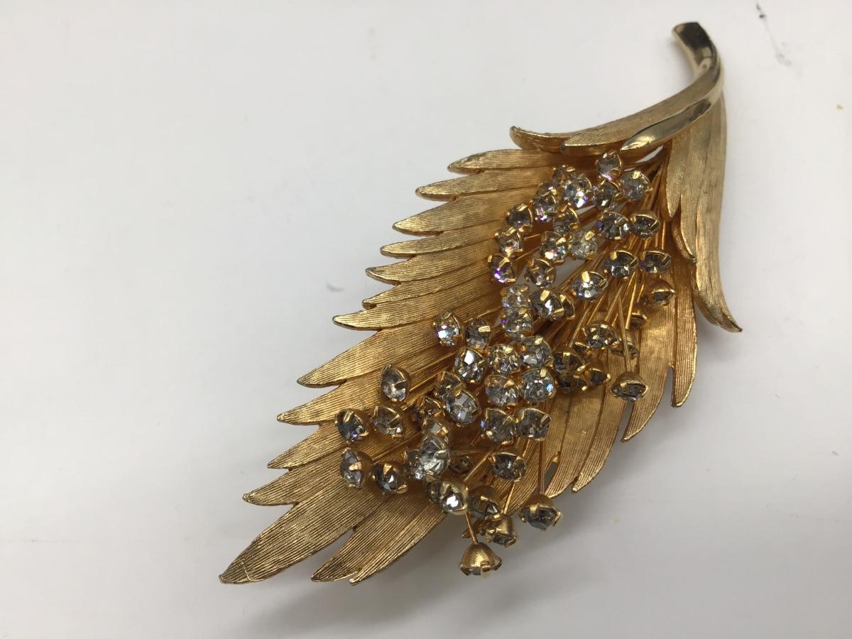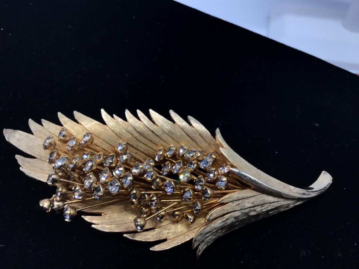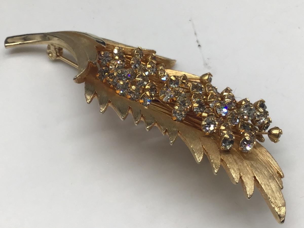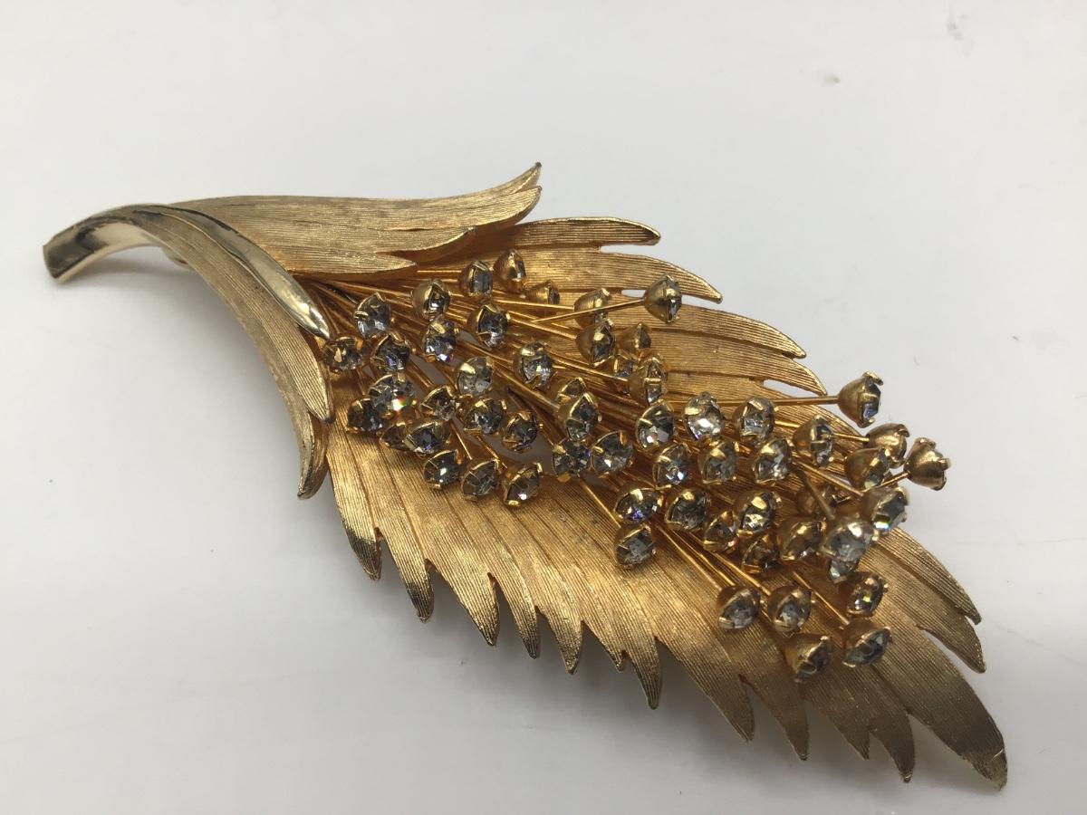 Beautiful Large Brush Gold Rhinestone Brooch Vintage
