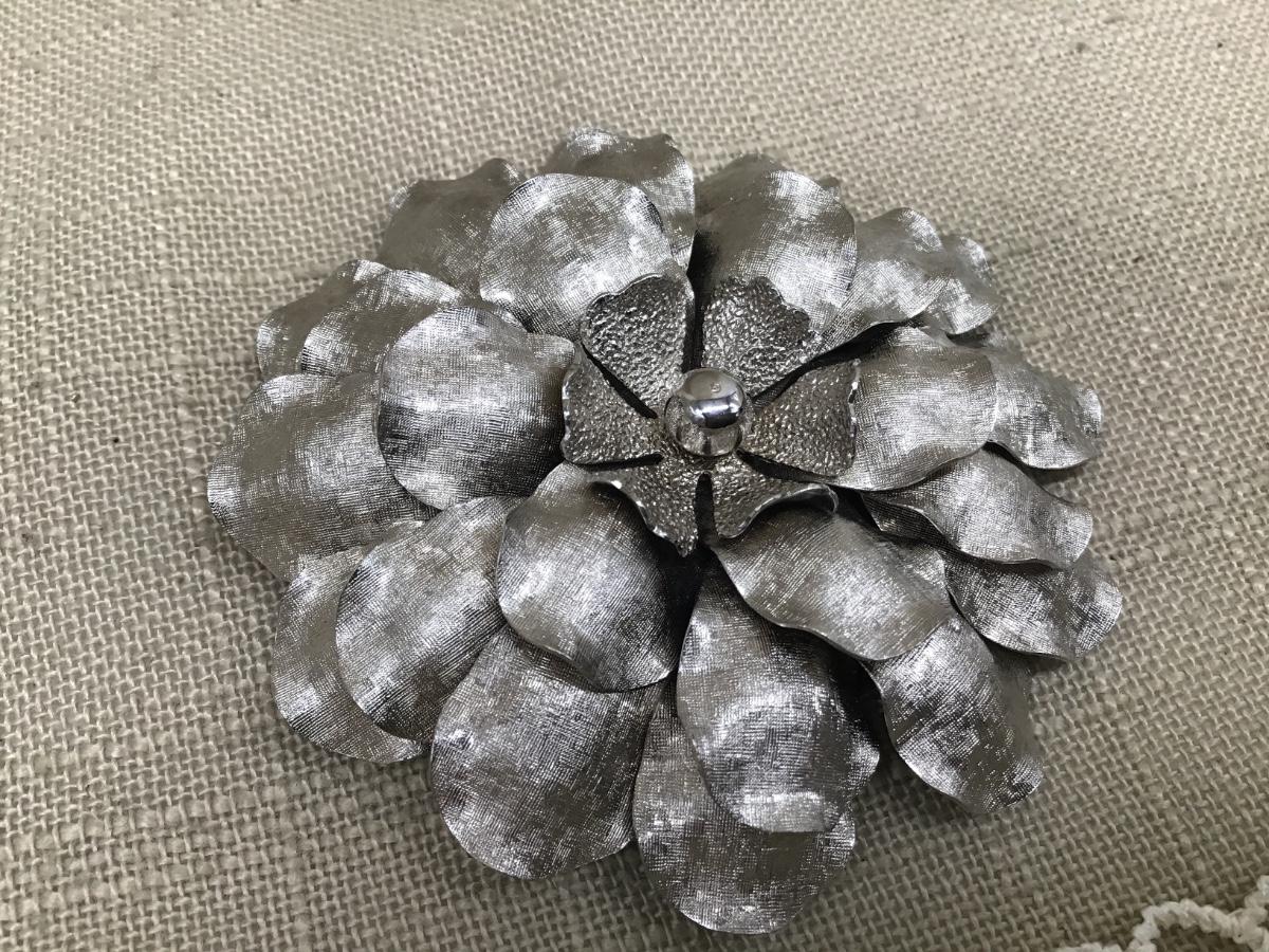Beautiful Large Brushed Silver Tone Floral Brooch