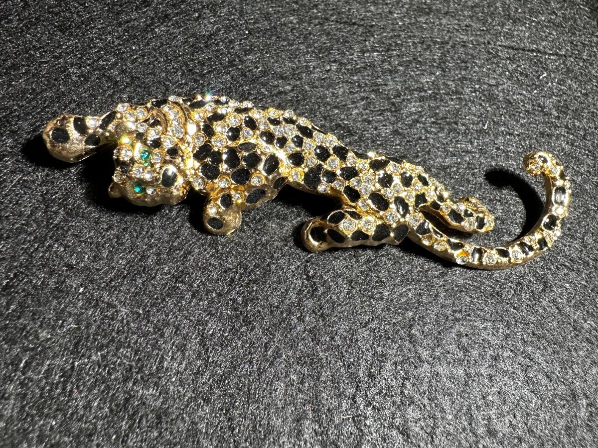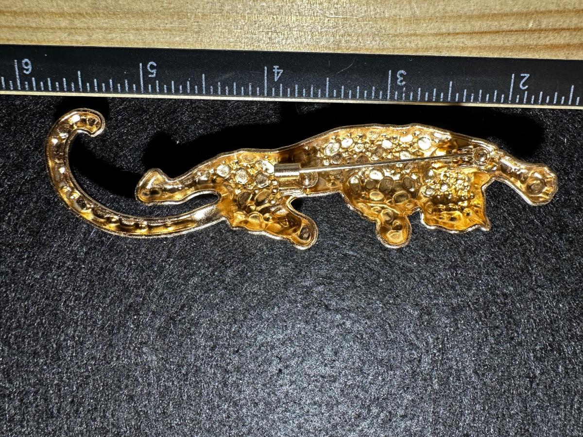 Beautiful large fashion Clear rhinestone gold tone jaguar brooch