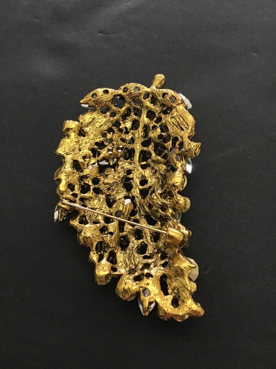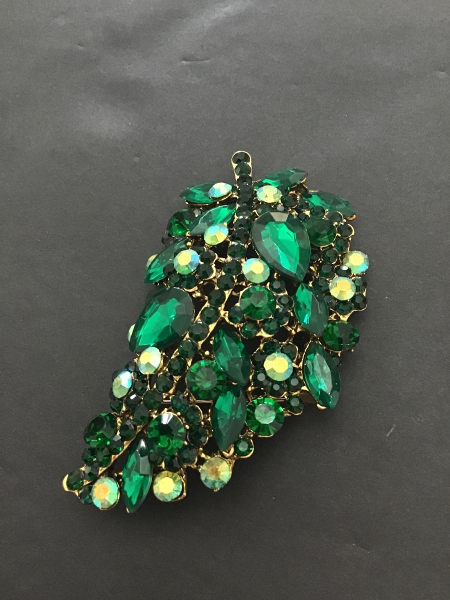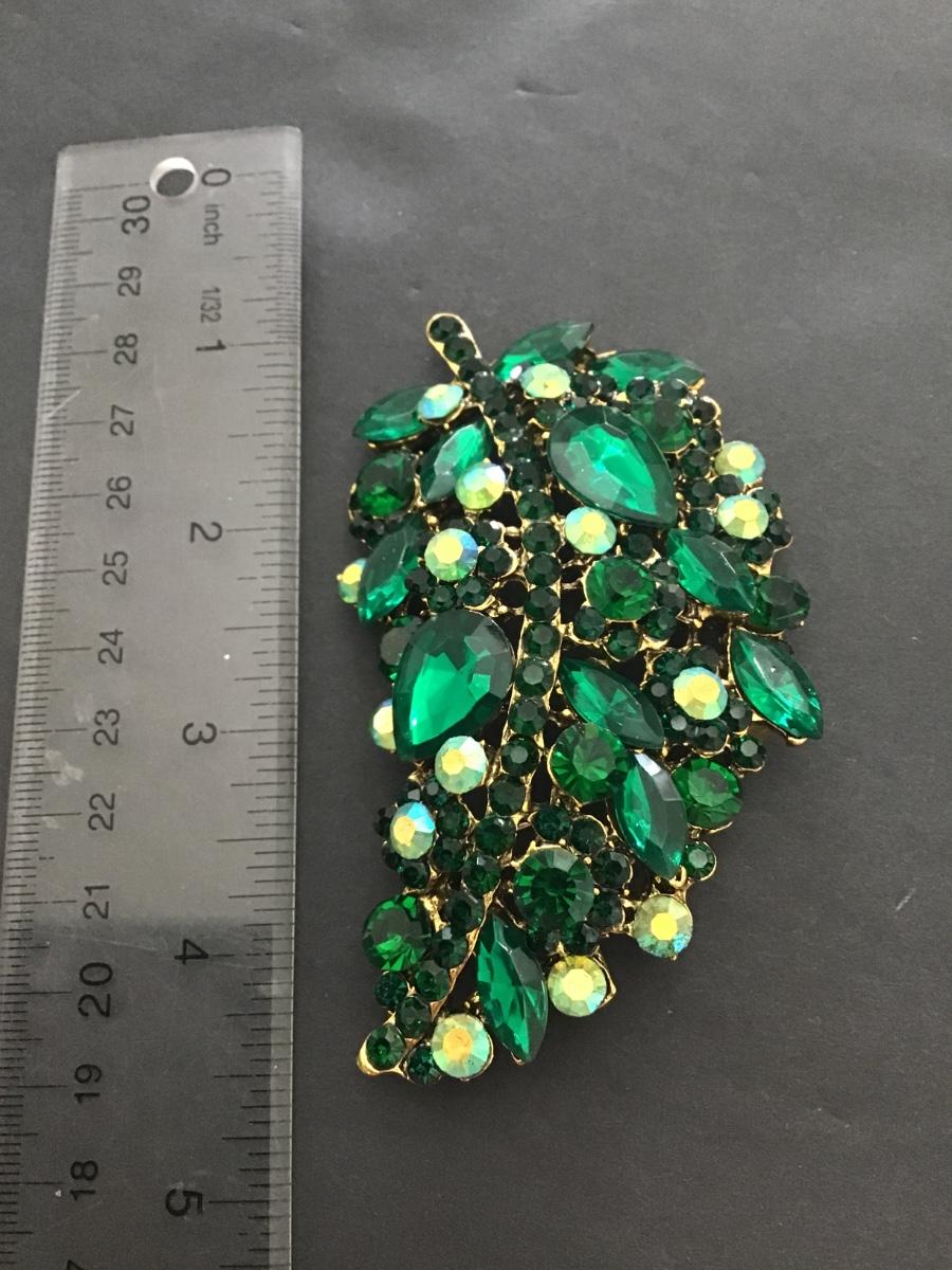 Beautiful large green Rhinestone Statement leaf brooch