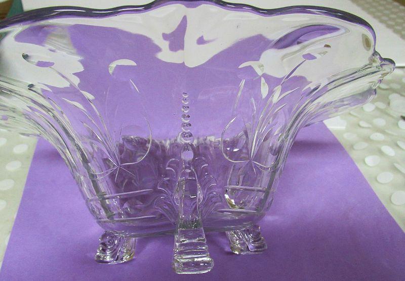 Beautiful Large Heisey Empress Dolphin Foot Bowl With Fancy Cutting
