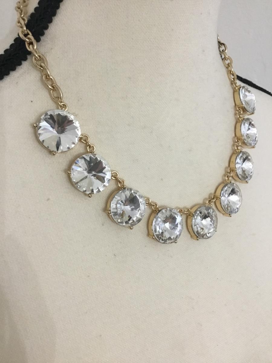 Beautiful large rhinestone gold tone statement, necklace