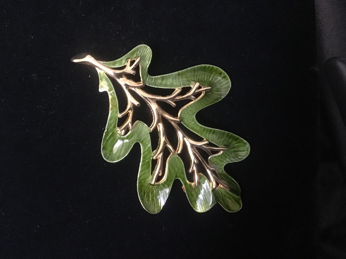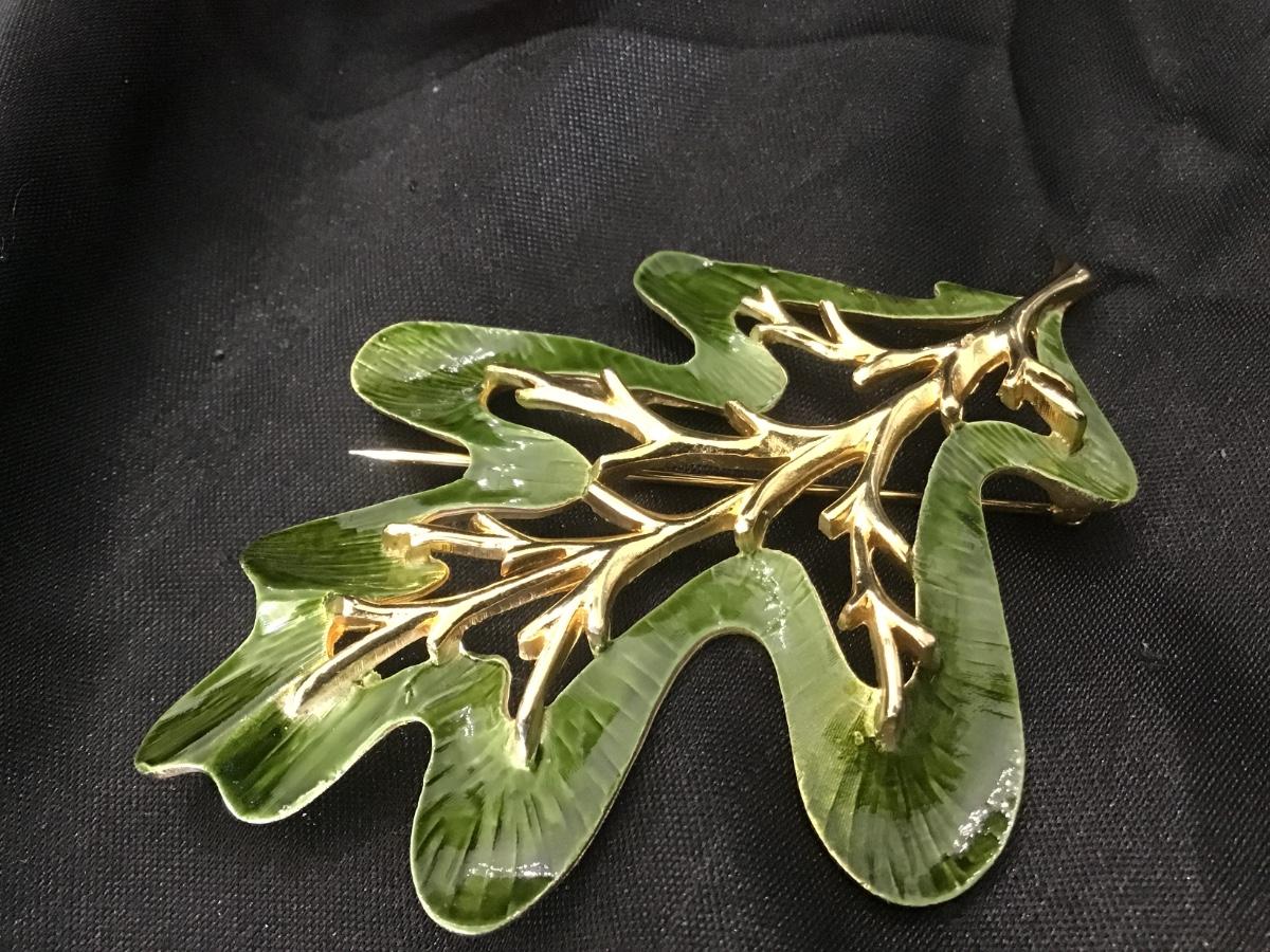 Beautiful large Sarah Coventry enameled Fall leave Brooch