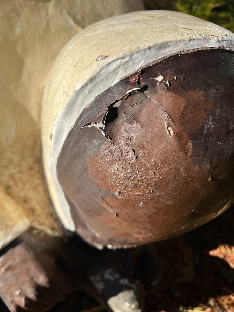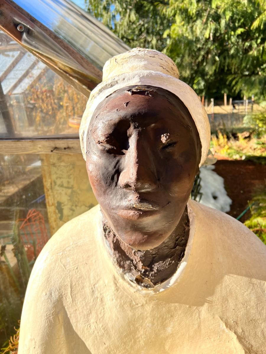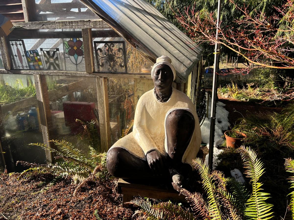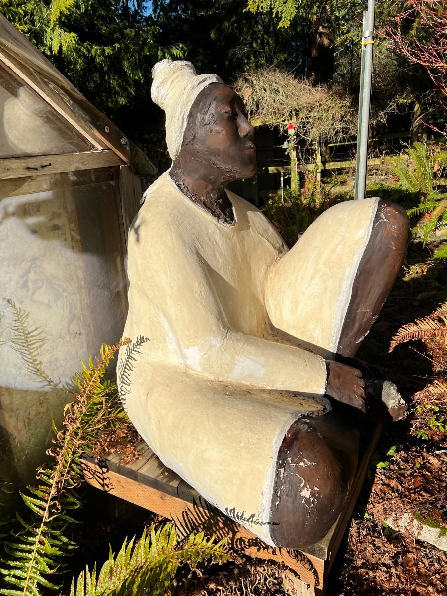 Beautiful Large Statue of Woman in Seated Position, perfect for your Zen garden! She has such a calming expression and posture. Condition is fair, with clear signs of weathering in places (perhaps best to move this statue with it's wooden base, which is included). Condition shown in photos.