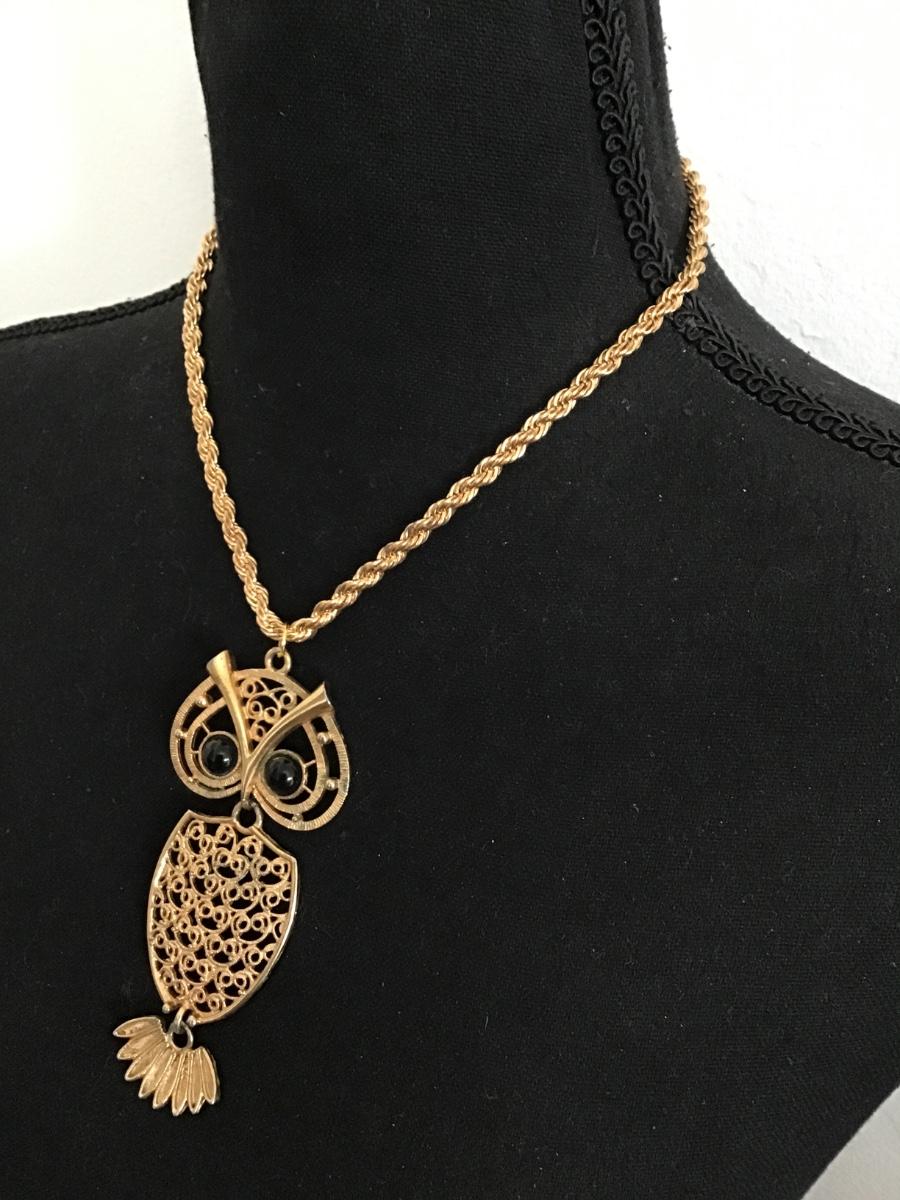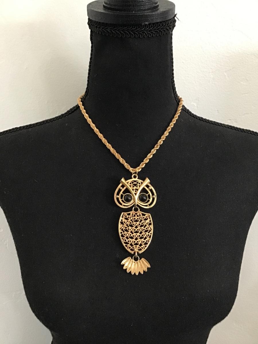 Beautiful, large vintage, retro, gold, toned, owl statement, necklace