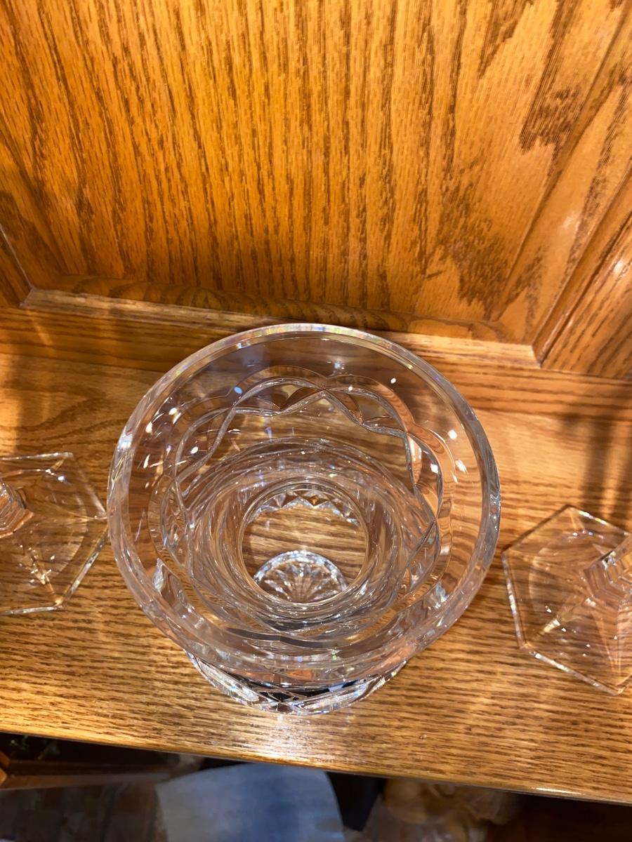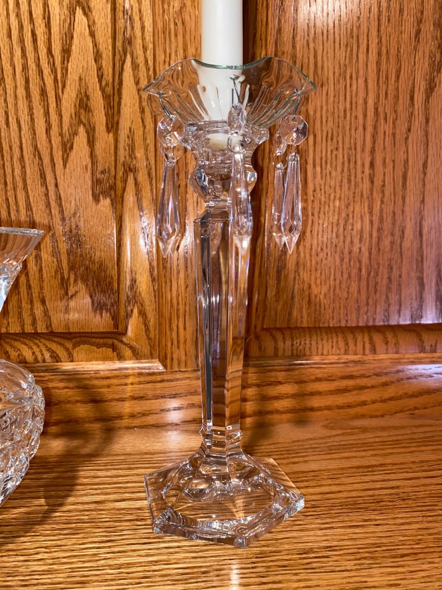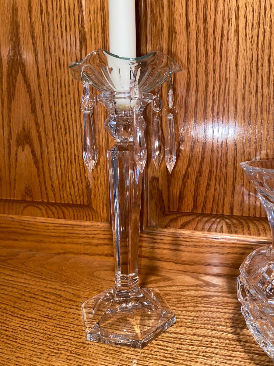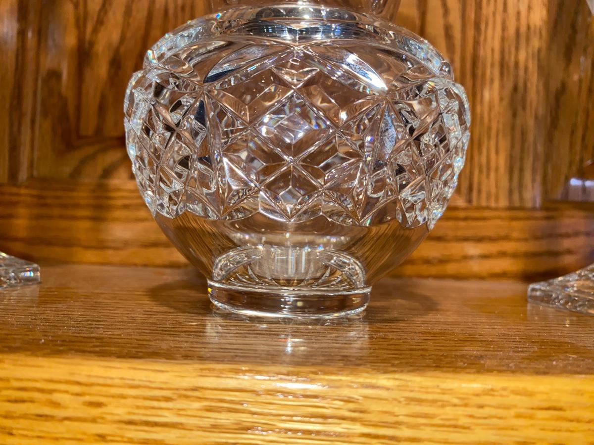 BEAUTIFUL LEAD CRYSTAL CANDLESTICK HOLDERS AND A CRYSTAL VASE