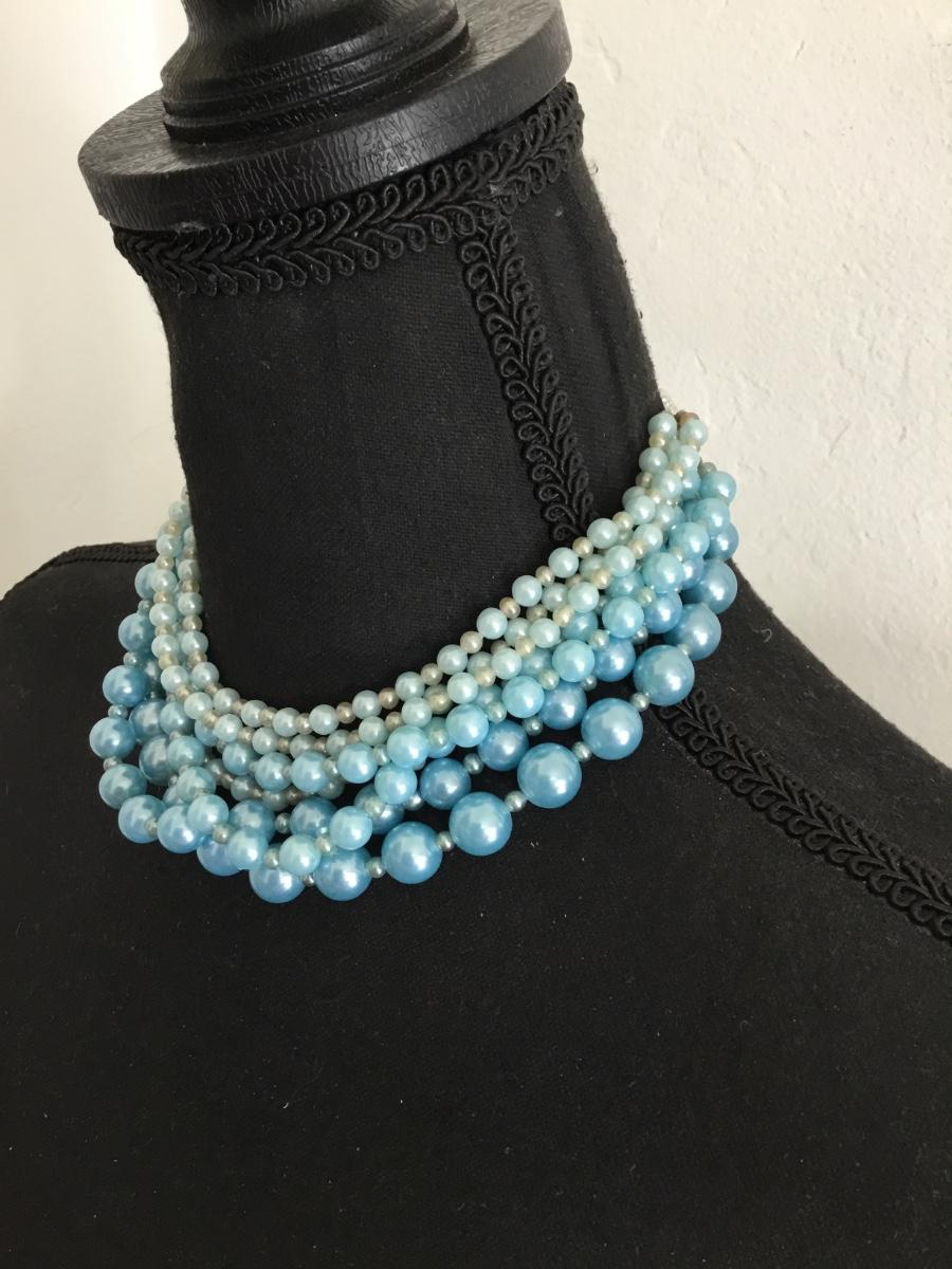 Beautiful light, blue, multi strand, pearl vintage Japan necklace