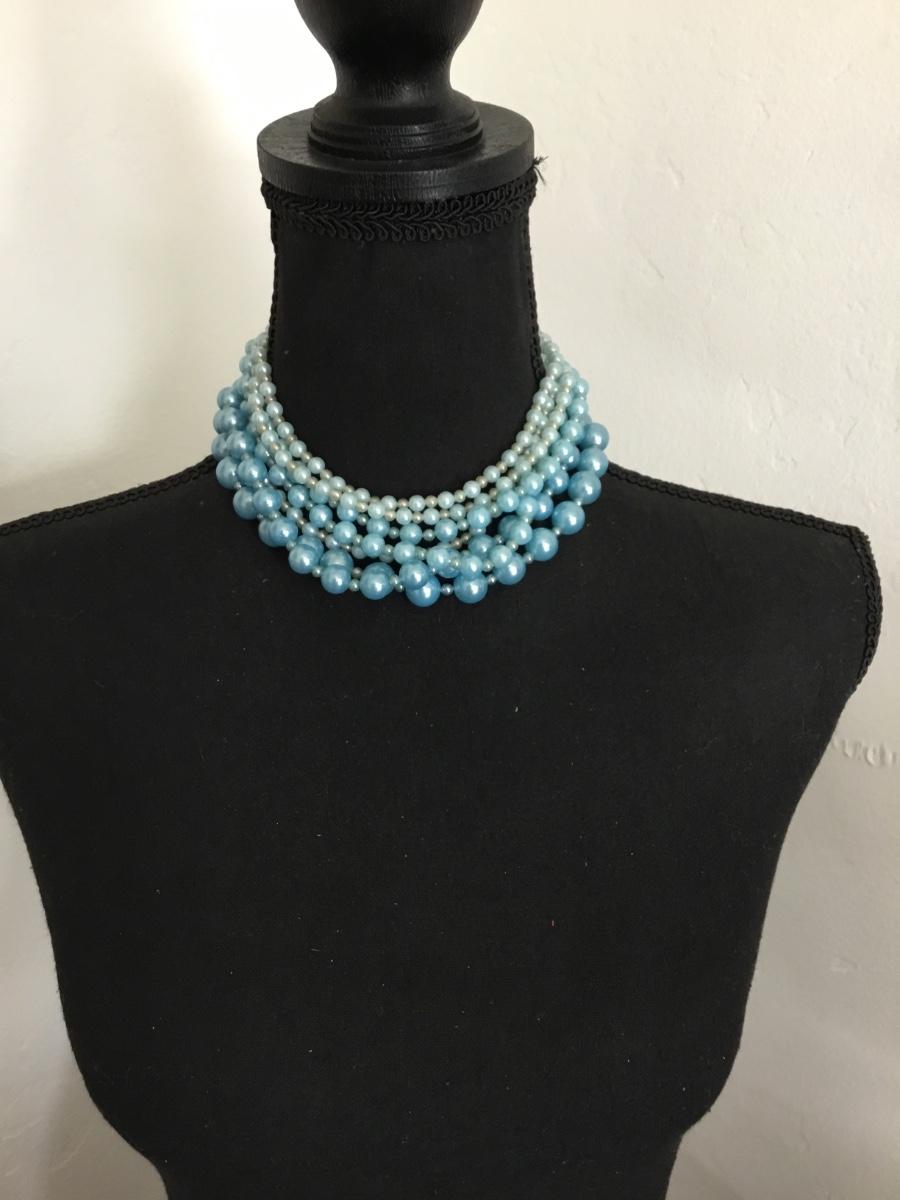 Beautiful light, blue, multi strand, pearl vintage Japan necklace