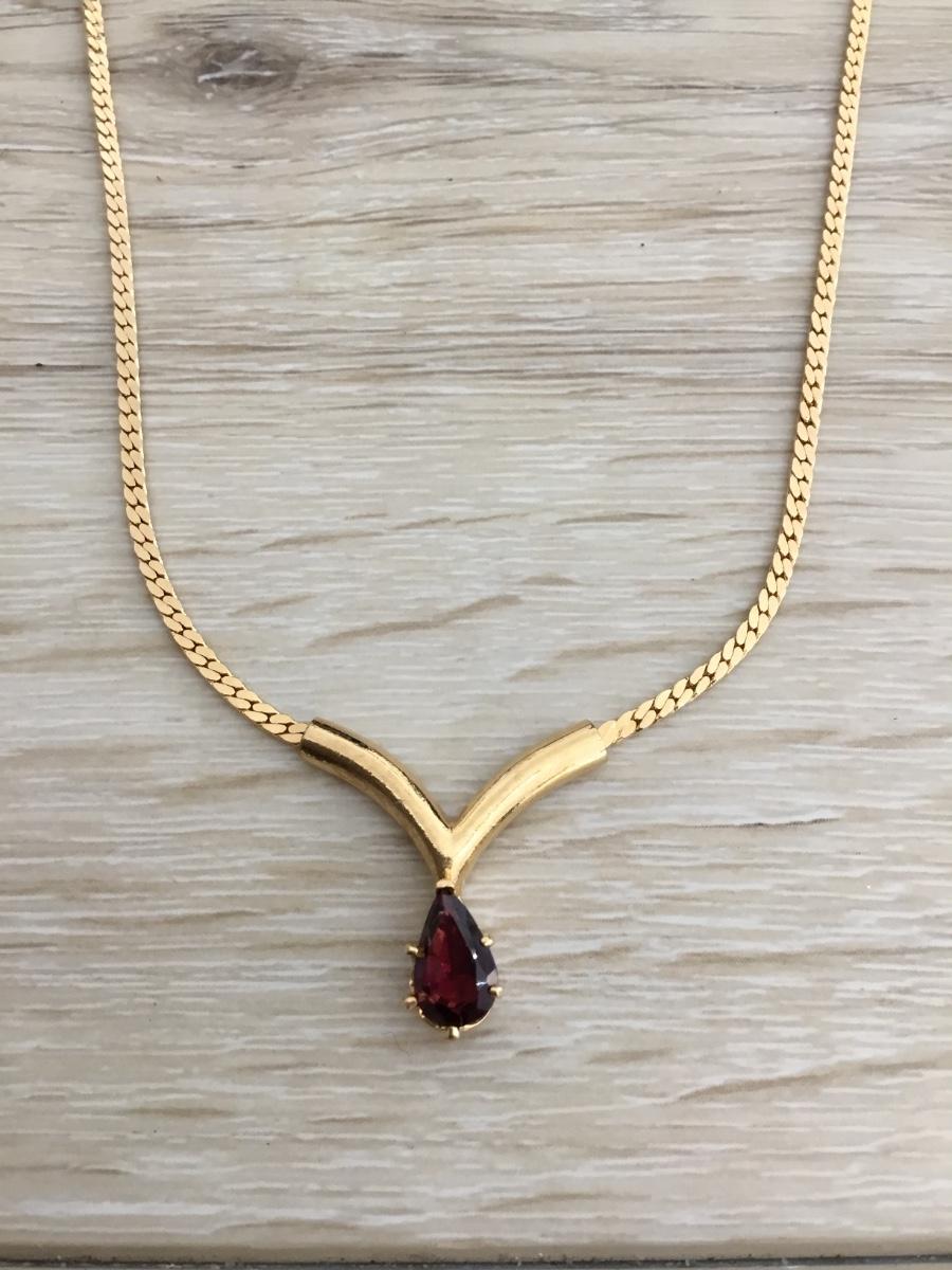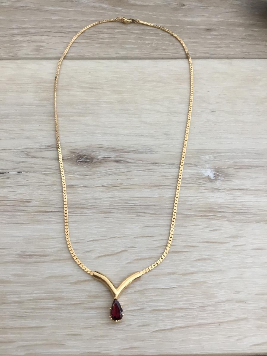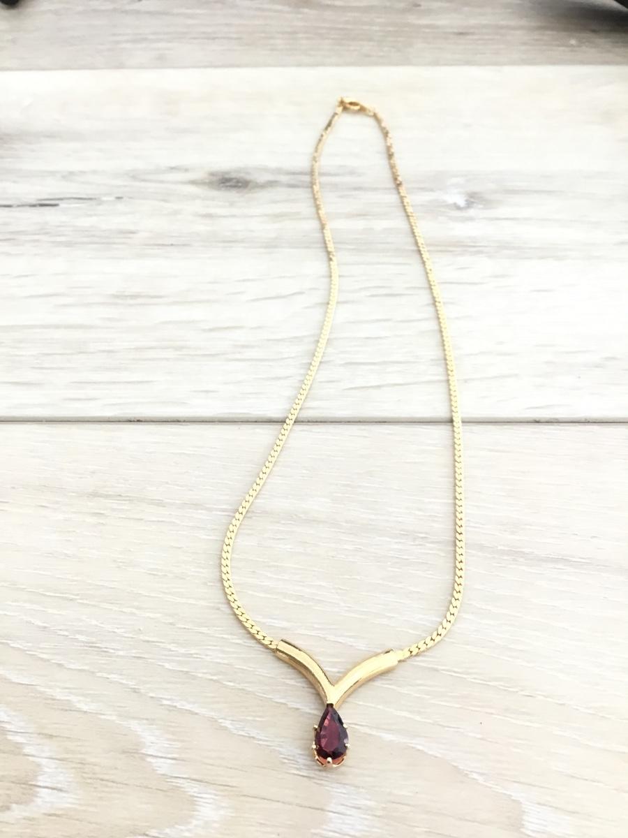 Beautiful light burgundy, plum, rhinestone, gold, toned, chain necklace