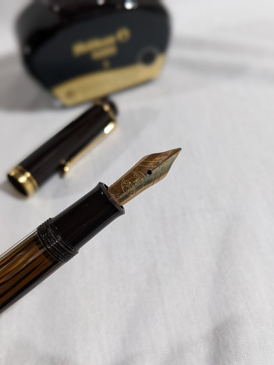 Beautiful Like New Pelikan 14C-585 Fountain Pen and Full Black Inkwell