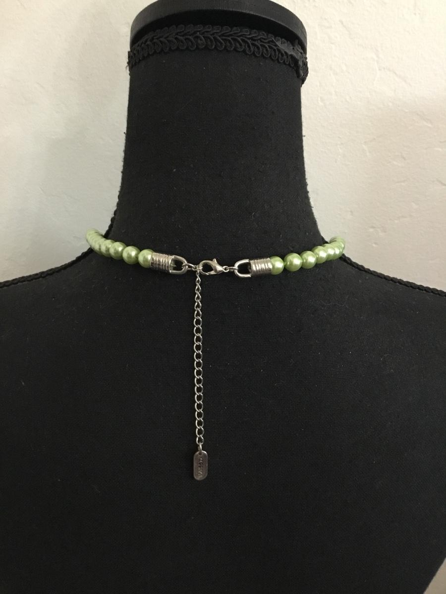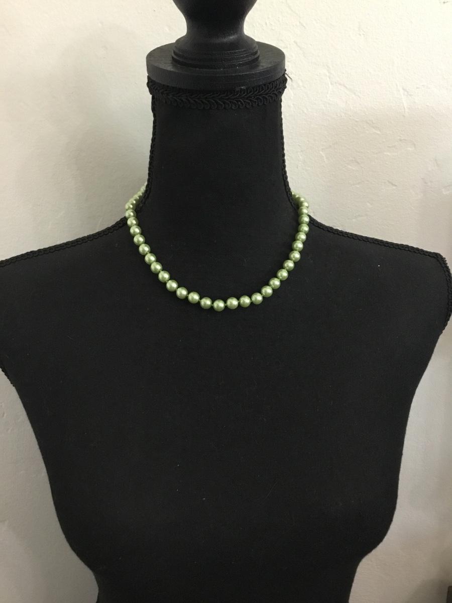 Beautiful lime light green faux pearl double knotted necklace very nice