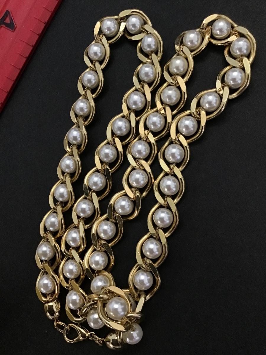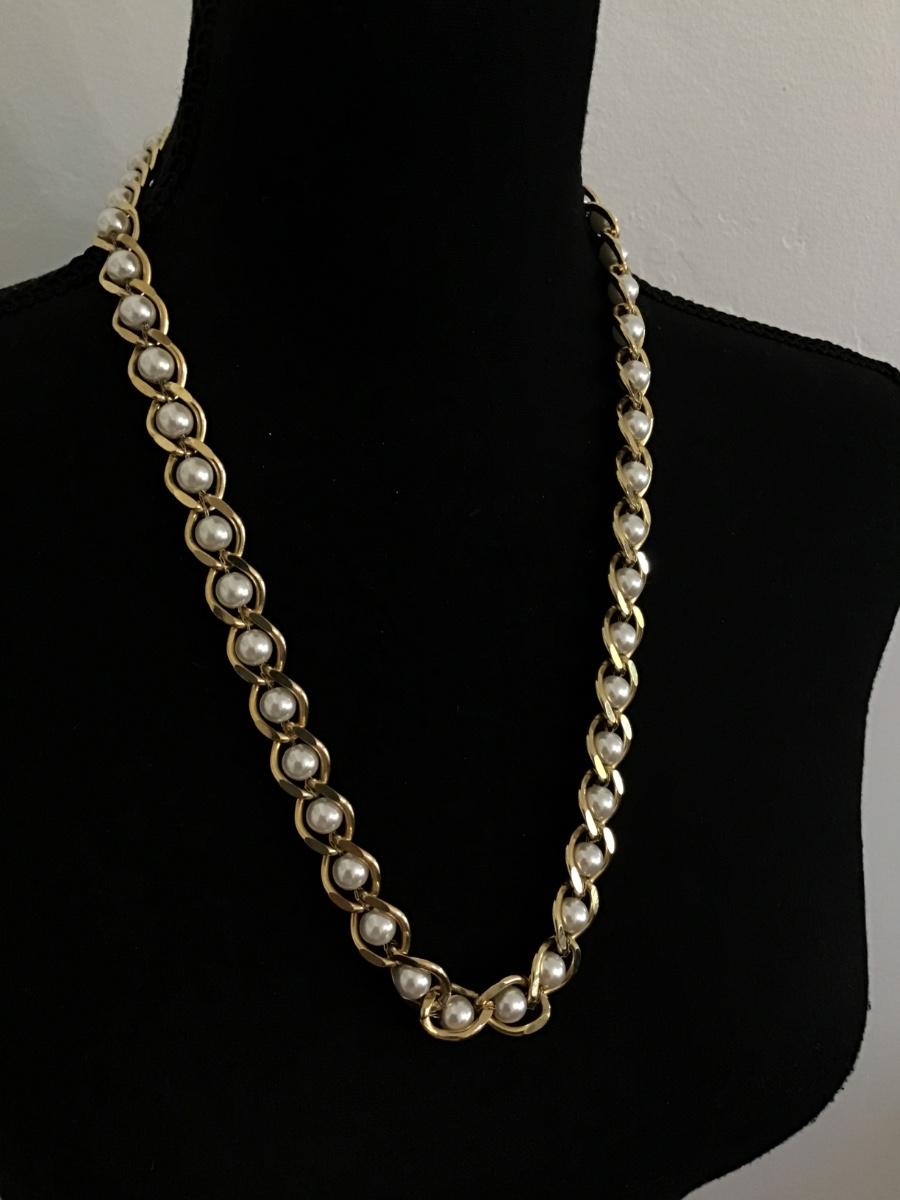 Beautiful Link Gold Tone Iredescent Beaded Necklace
