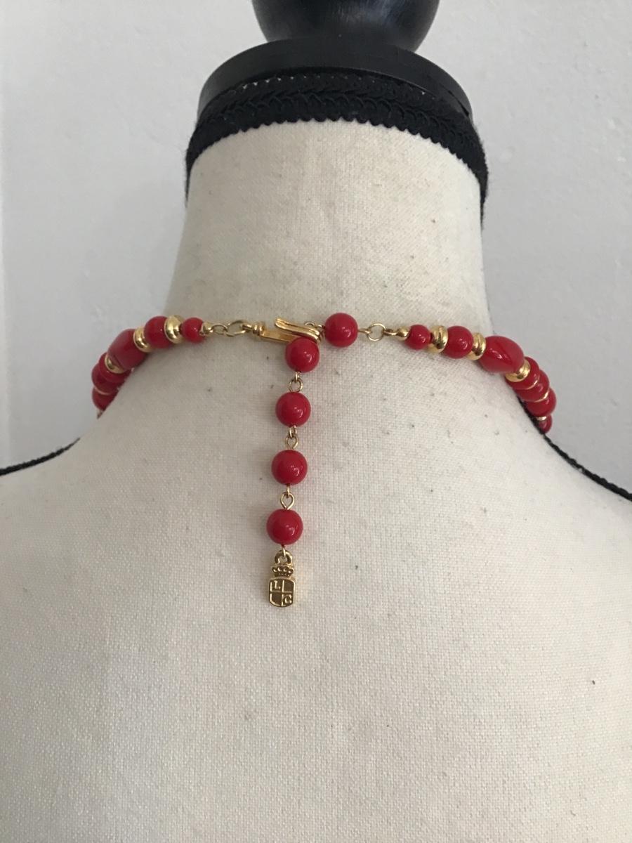 Beautiful, Liz Claiborne vintage, red beaded necklace with gold tone