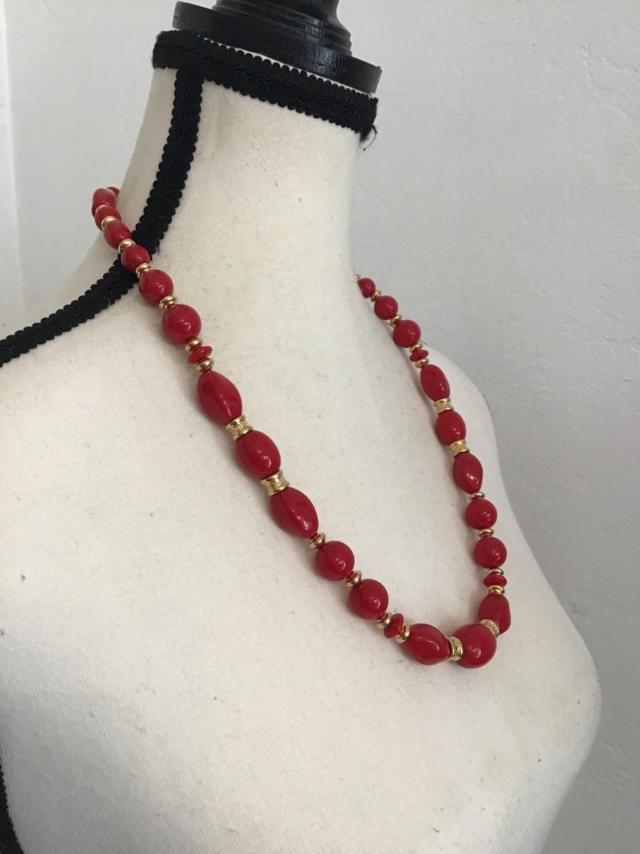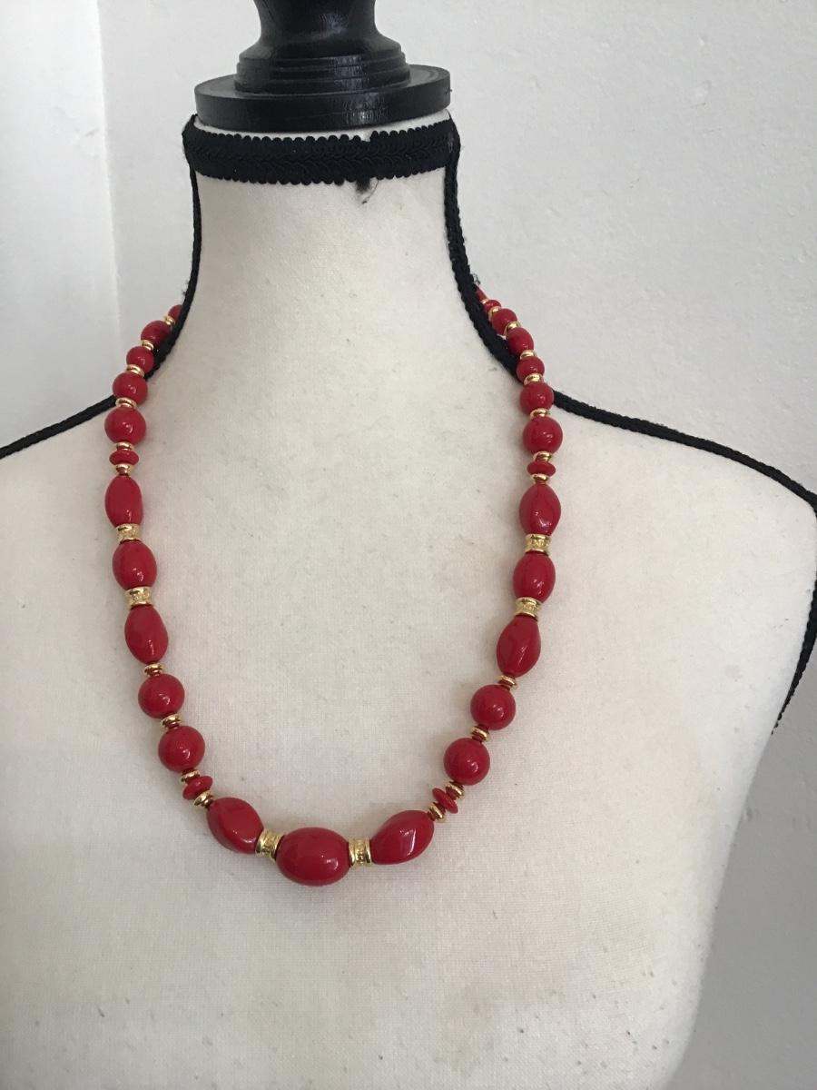Beautiful, Liz Claiborne vintage, red beaded necklace with gold tone