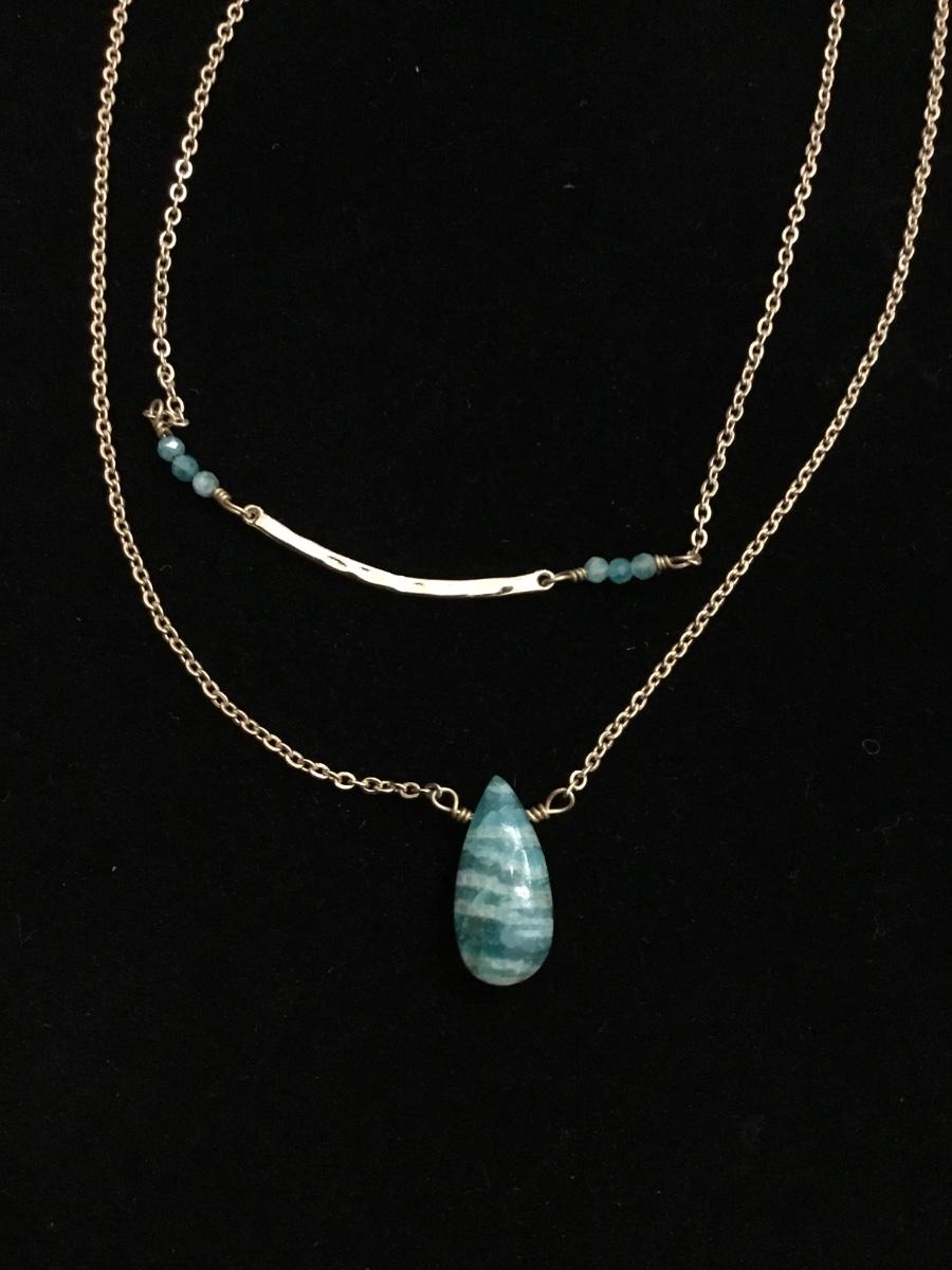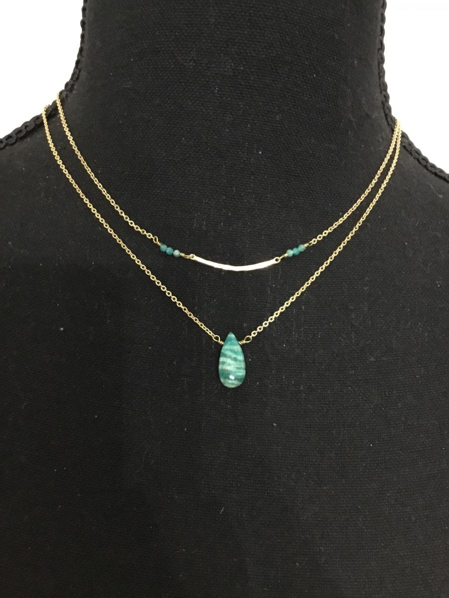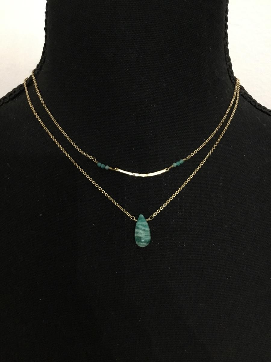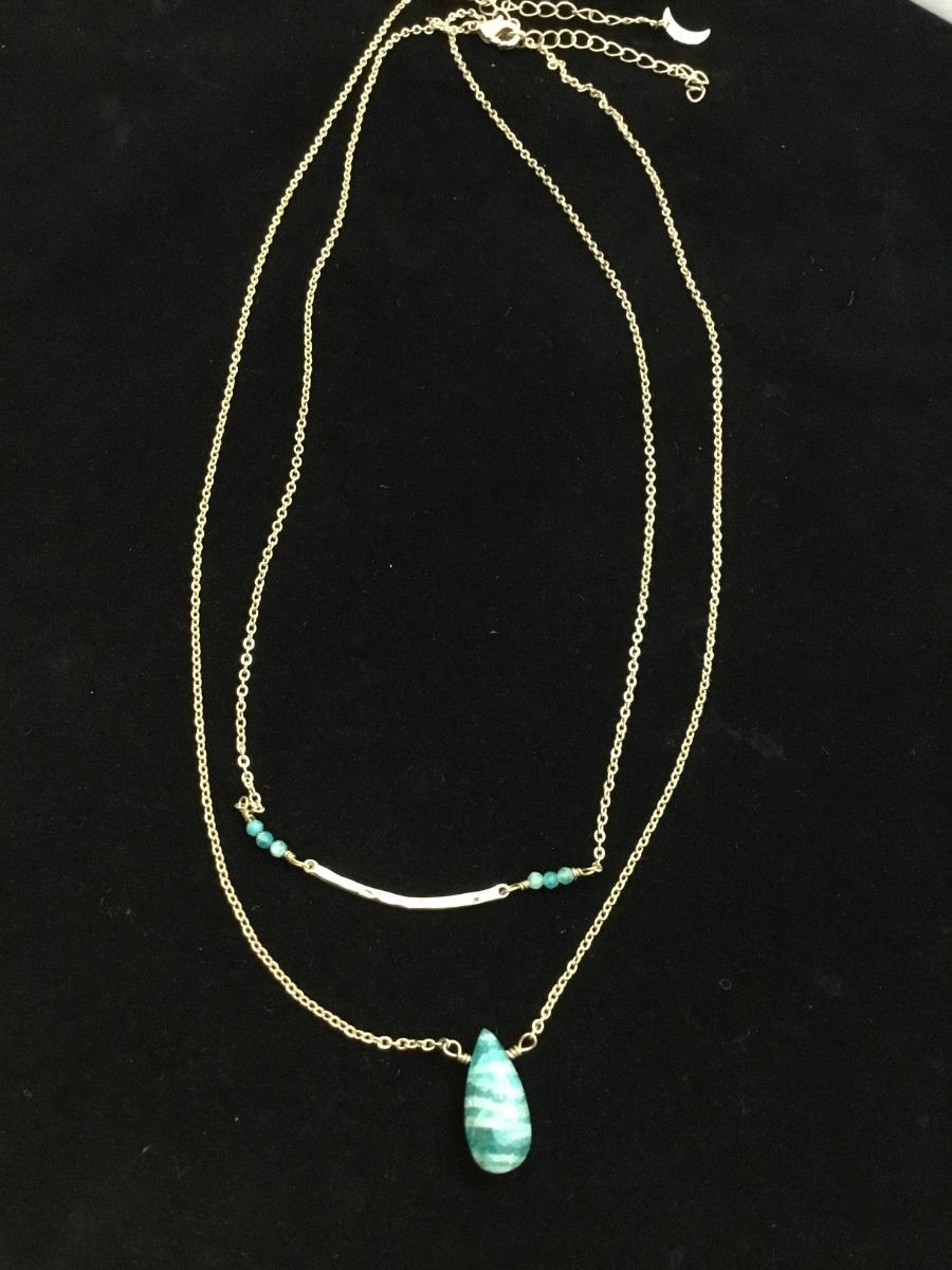 Beautiful Luna Norte Multi layer, gold tone with amazon. Jade teardrop stone pendant