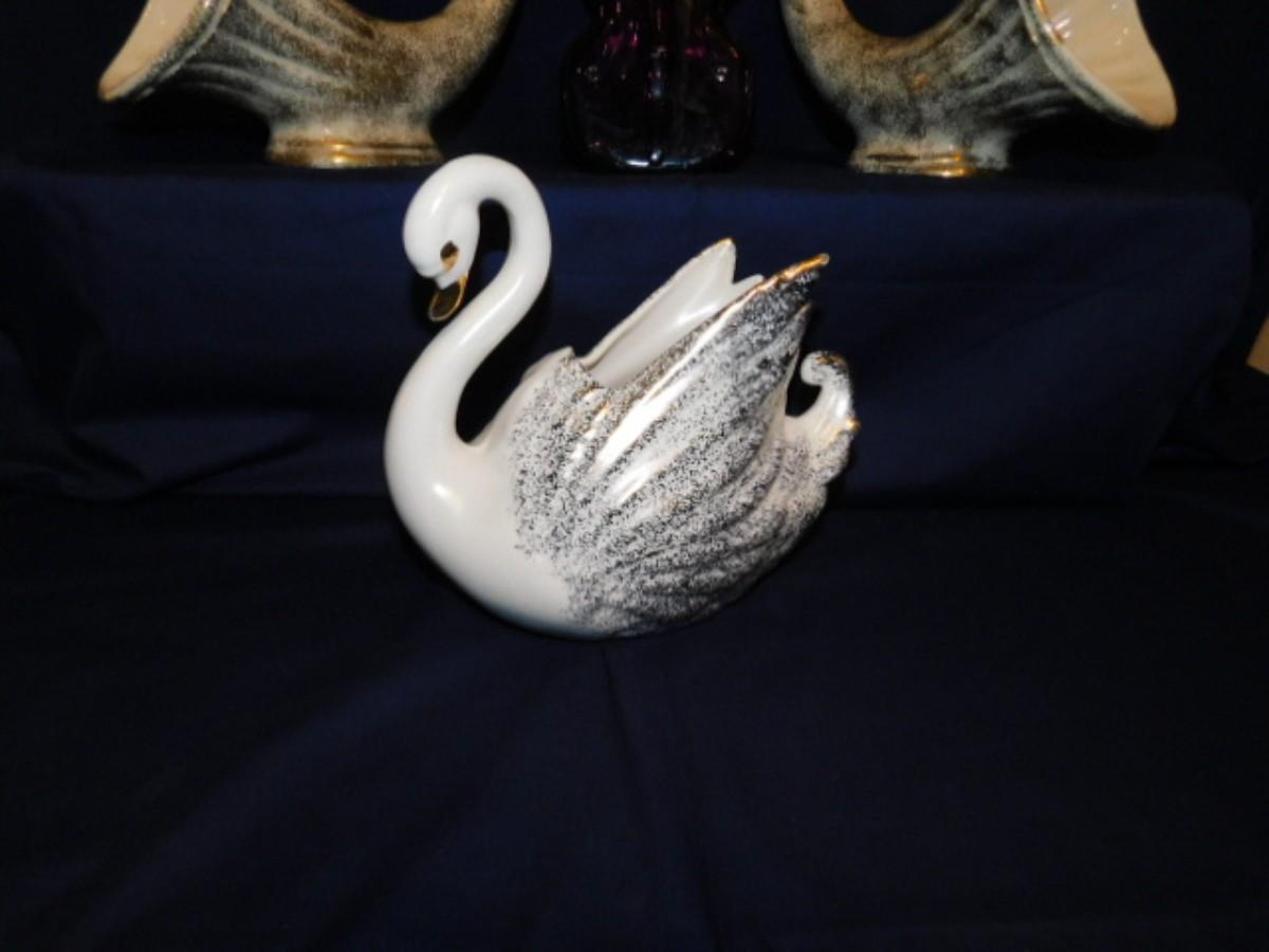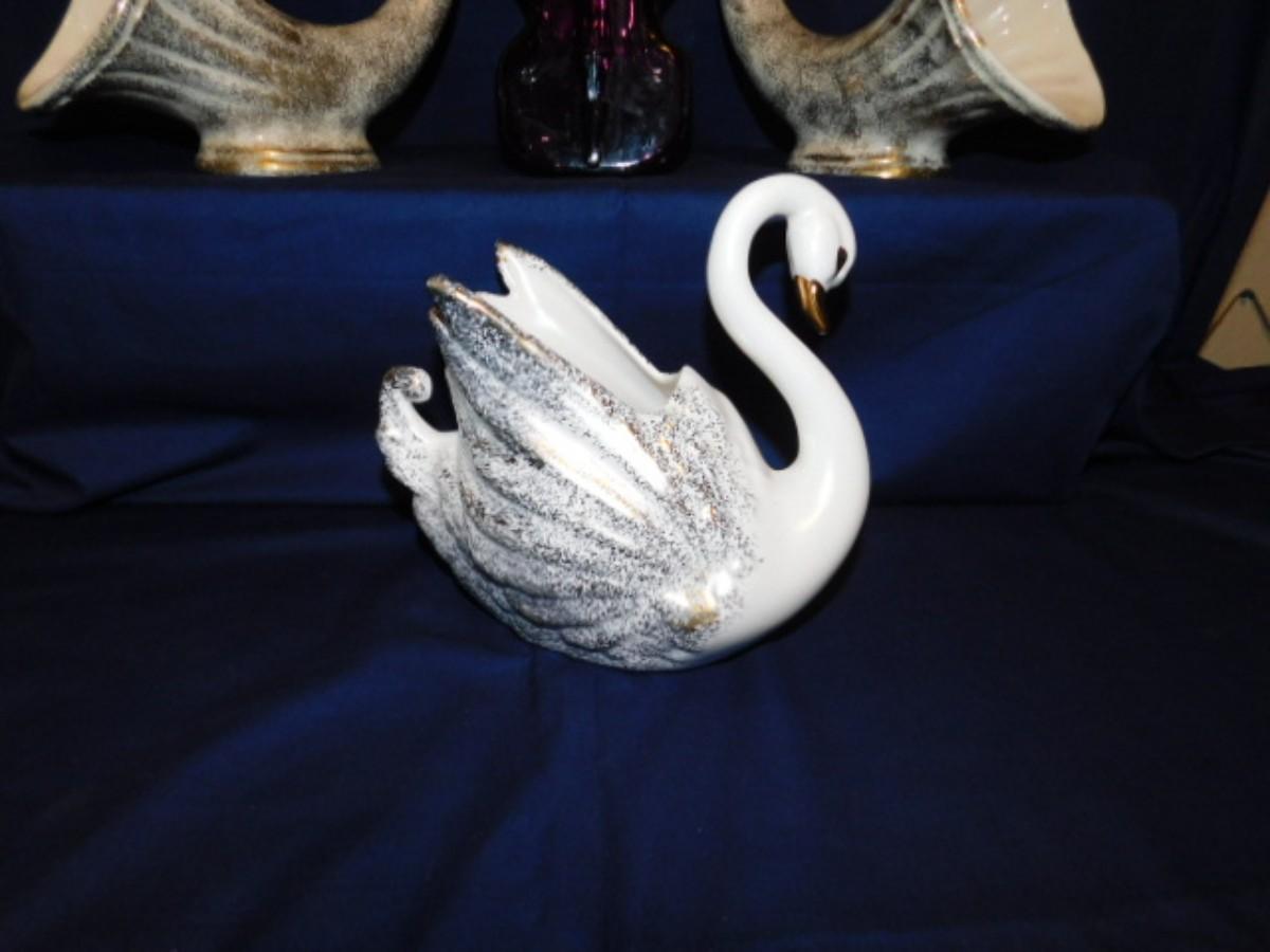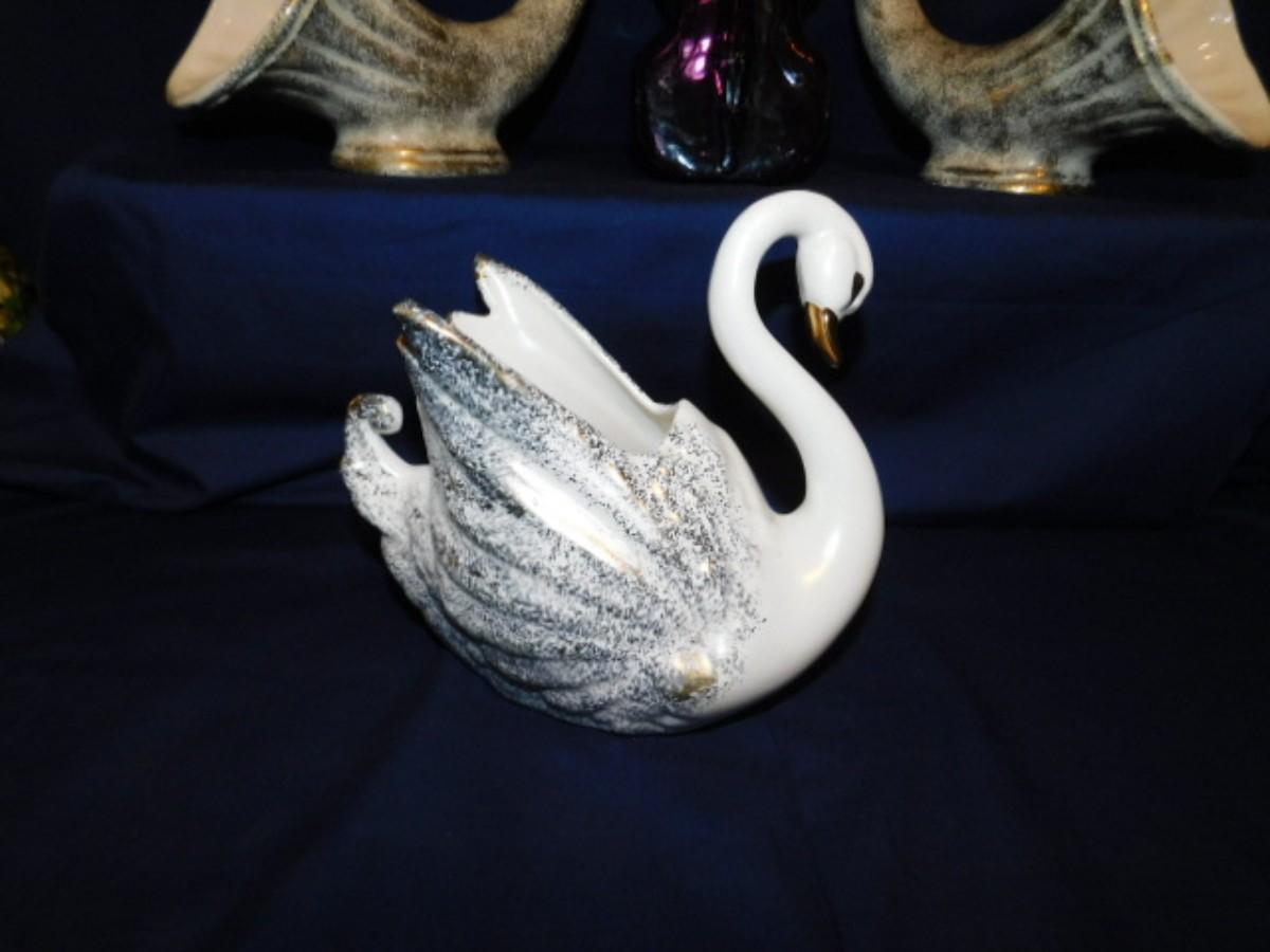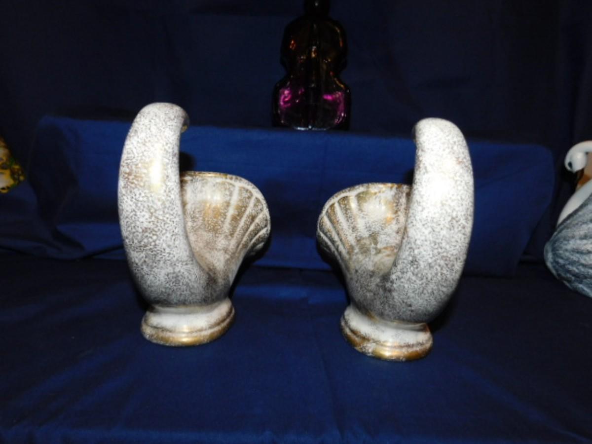 BEAUTIFUL MID-CENTURY GOLD SPECKLED SWAN AND CORNUCOPIA'S