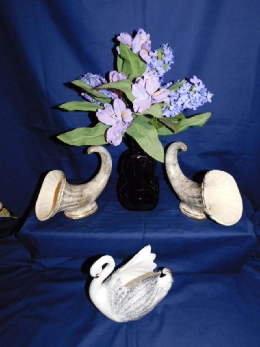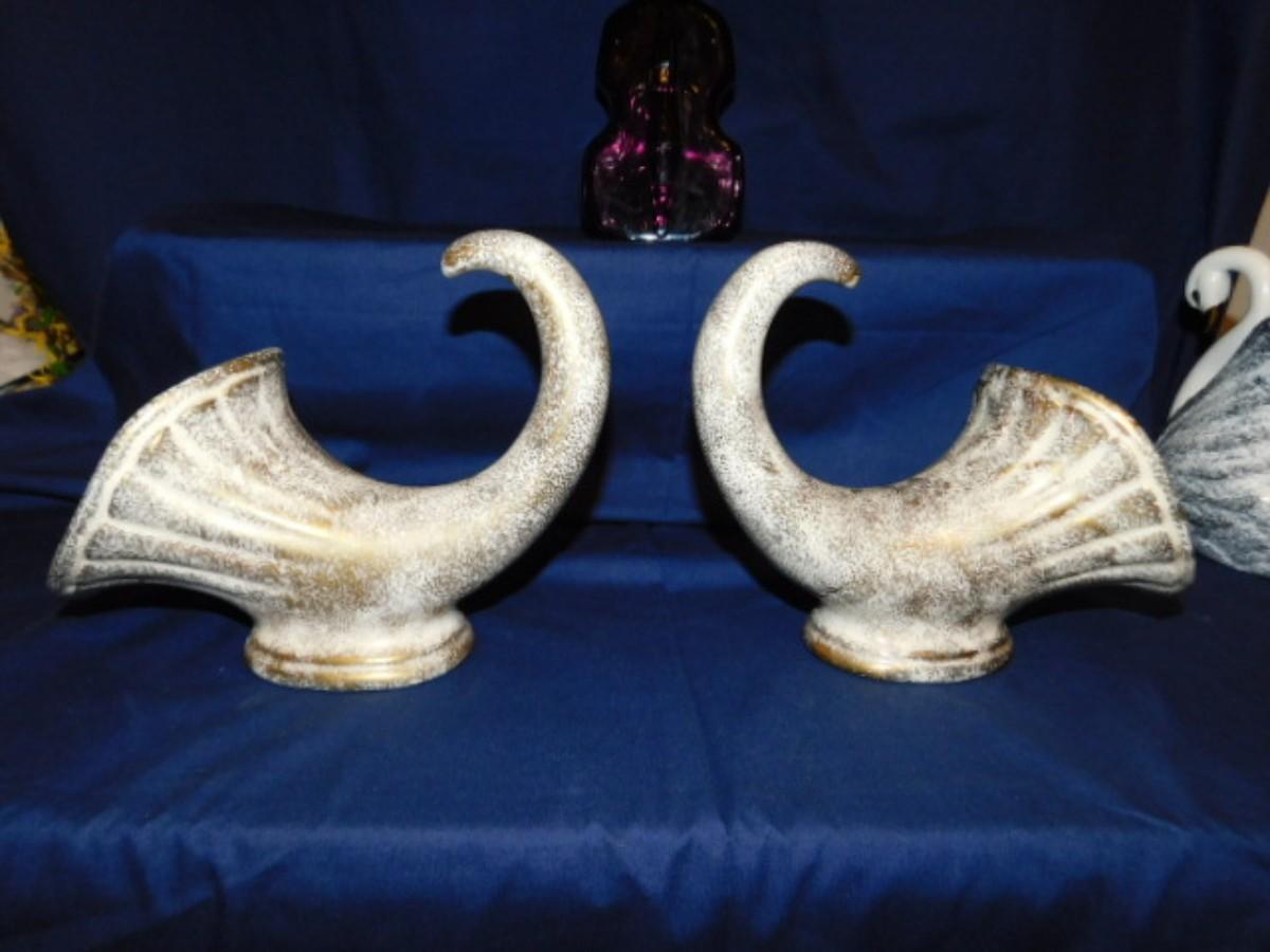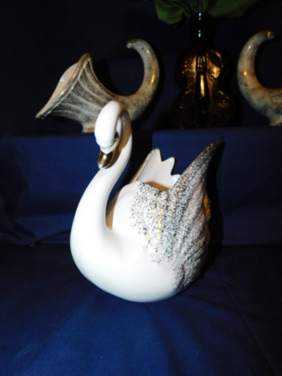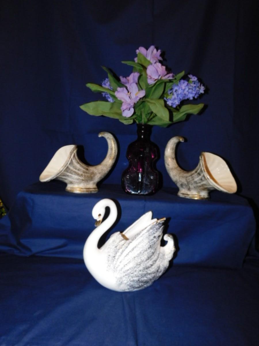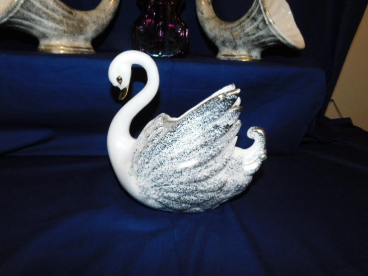 BEAUTIFUL MID-CENTURY GOLD SPECKLED SWAN AND CORNUCOPIA'S