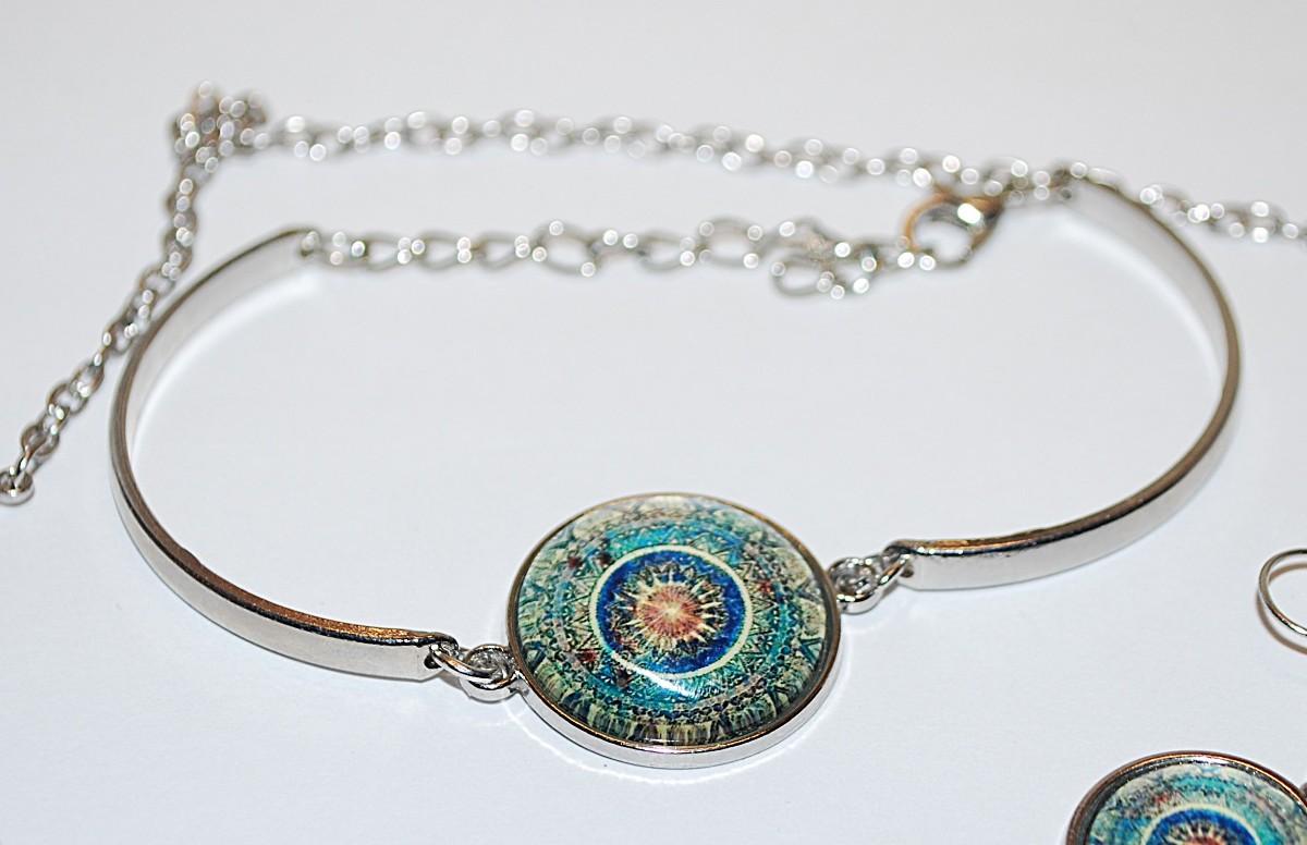 Beautiful "MEDALLION" NECKLACE (1" Across+ 20" L) JEWELRY SET with Matching BRACELET (Hard Sides, 2¾" Opening) & Matching EARRINGS with Wire Hook Clasp